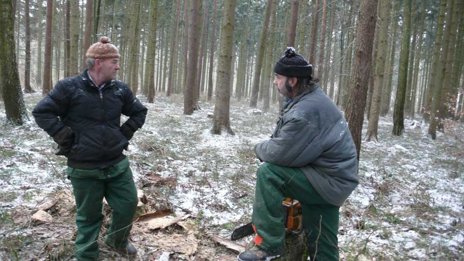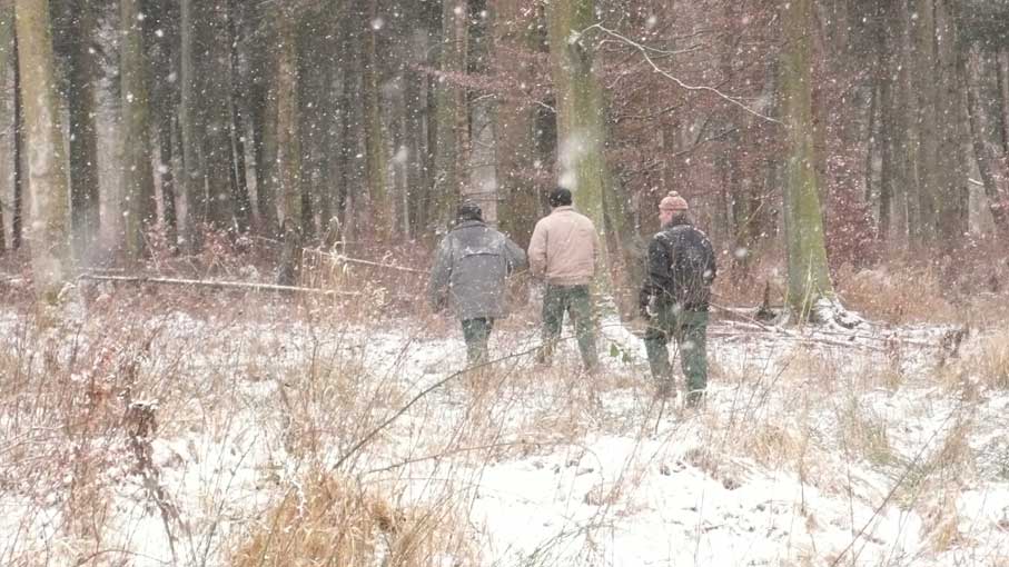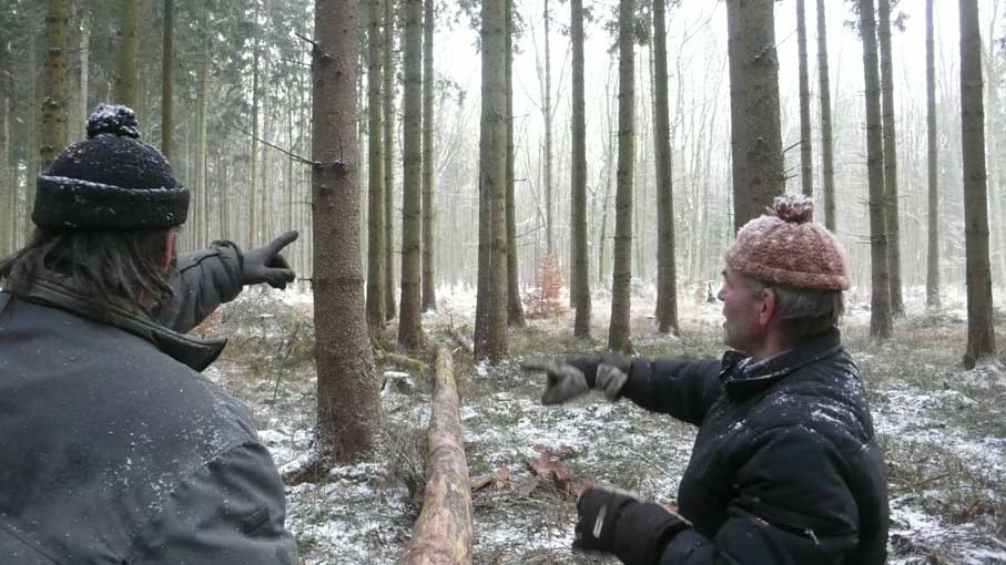 Da ist Jochen Barth, der Sohn von Hertha Barth, geborene Schult, dem letzten Kindermädchen auf dem Gut, gegenüber, vorne über den Hof, wo der Weg vorbeiging zur Schule und Kirche. Über den Friedhof. Jeden Tag, Mit dem Mann, der aus Stalingrad nicht mehr zurückkam, als Vater.Vom Gross-Vater Schult der Wald jetzt, den er als Siedler nach 45 erhielt, in Medrow nebenan, der den Witzlebens gehörte und wohin wir schauen auf der anderen Seite des Hauses, Nach hinten jeden Tag. Auch er will den Turm wiederhaben unter dem er als Kind gross geworden jeden Tag und auf den er geschaut.