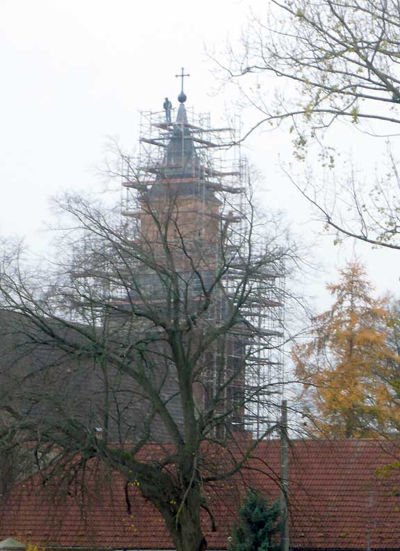 Es mag vielleicht ein alter Kinder-Glaube sein, was alte Leitern und frühe Wege heissen, aber ohne ihn hätten wir auch den Turm heute nicht wieder. Und allein seine Spitze nun frei von von aussen zu sehen bis in die Kugel und zum Kreuz sind schon ein Kunst-Werk in sich.