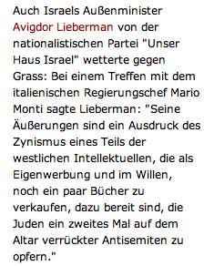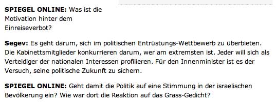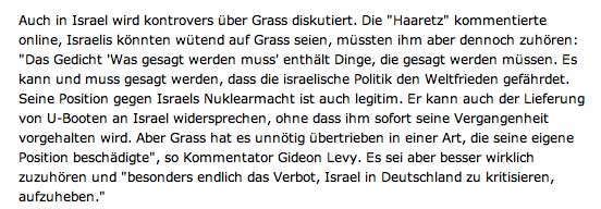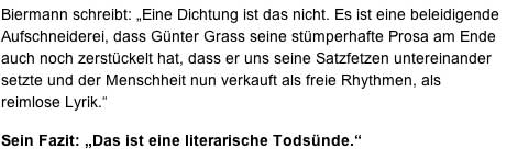 Reich Ranicki, der Verehrer der Grass'schen Gedichte, sagt, dies sei kein Gedicht und G. sei kein Antisemit,