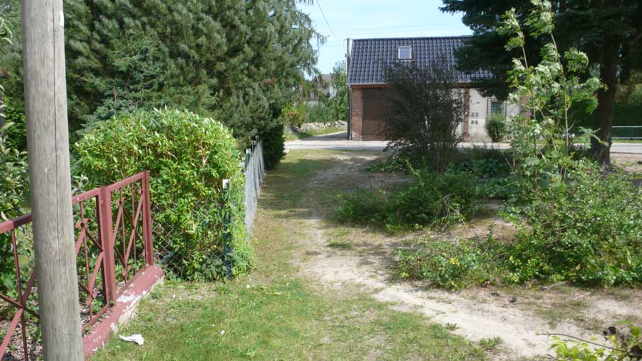 und links der zur Garagenauffahrt betonierte historische Weg zur Kirche - vor der Renuturalisierung wieder.