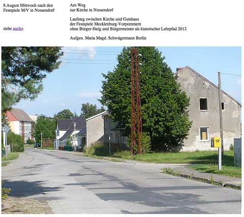 Kulturlandschaft Nossendorf heisst der Antrag an die EU in Brüssel, von dem die Land-Wirtschaft hier lebt, mit Wegen und Parks offen und in der Mitte Musik mit einem Turm demnächst wieder als Angebot und täglichen Berichten in die Welt wie das allmählich wird, grenzüberschreitend unseres Kerns bewusst.