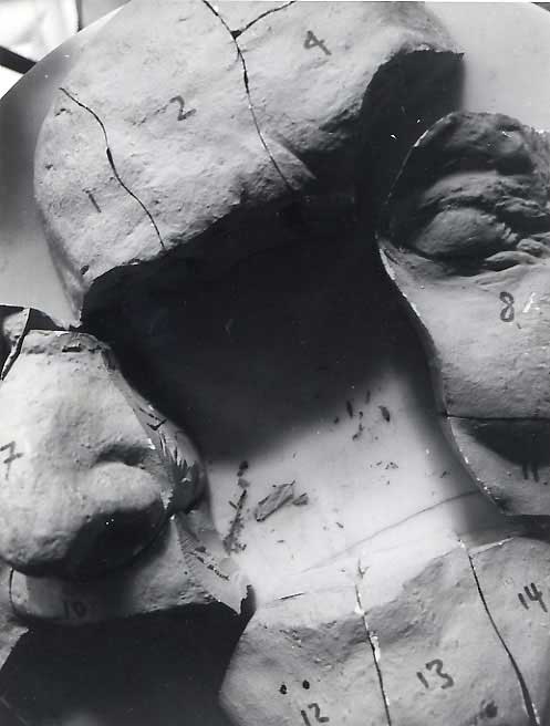 das Modell der Totenmaske in Teilen vor der Realiserung im Studio