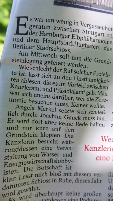 die kann man nicht wählen. Was für eine Chance vertuend hier Zentrum zu sein von Geschichte und Tat im Nukleus der Zeiten und Dinge. Solange sie sich scheuen diesen Auftrag anzunehmen, werden sie umsonst gelebt haben. Dixit.