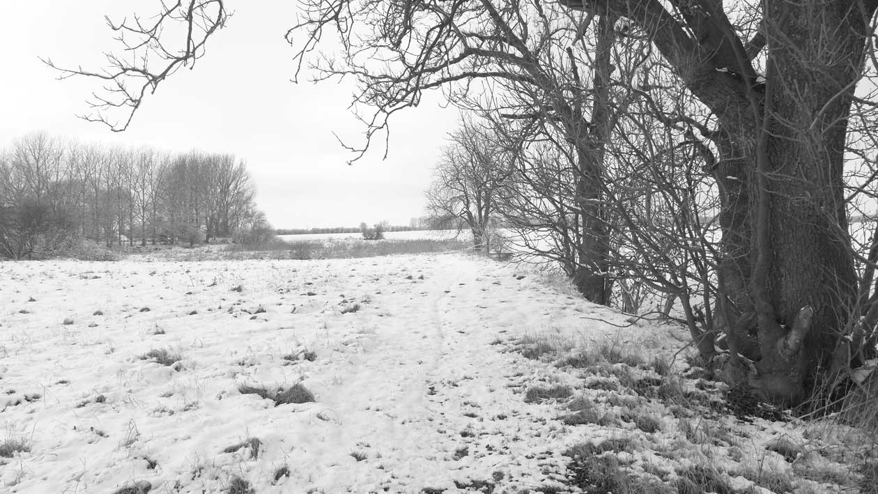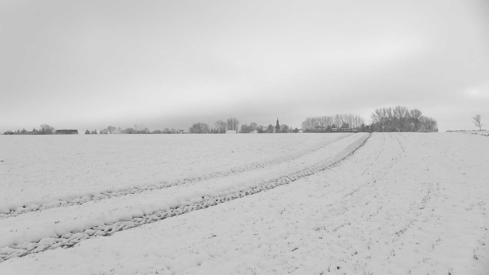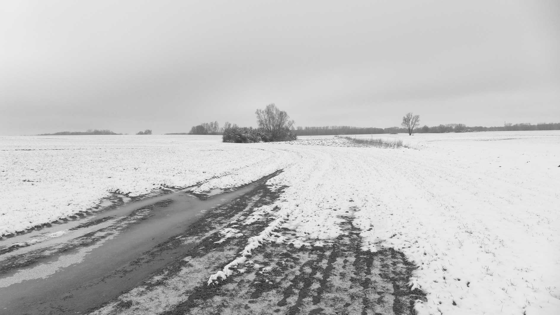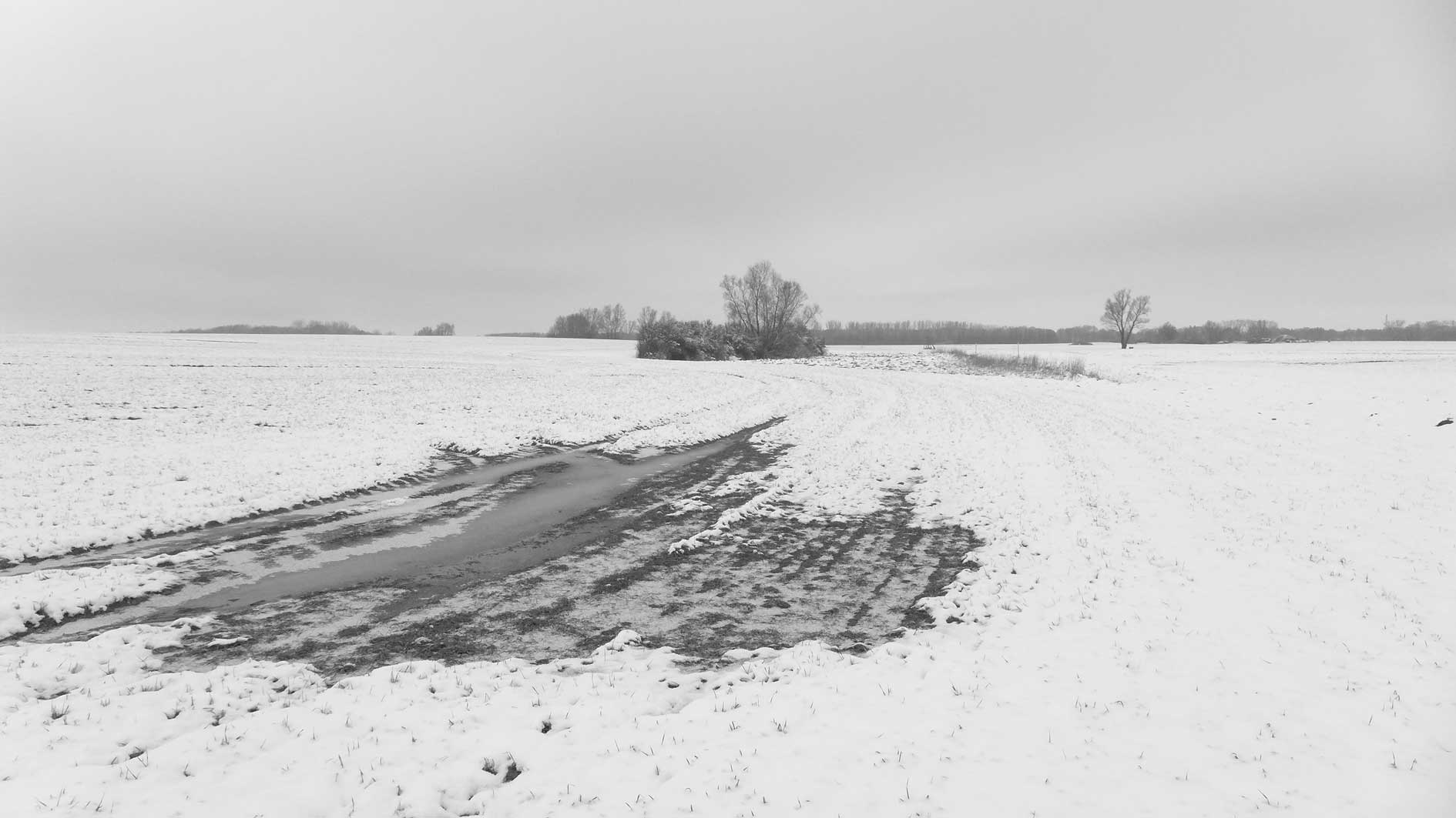 Der Weg, untergepflügt nun eine Sammelstelle für Feuchtigkeiten schlechter Ernte,