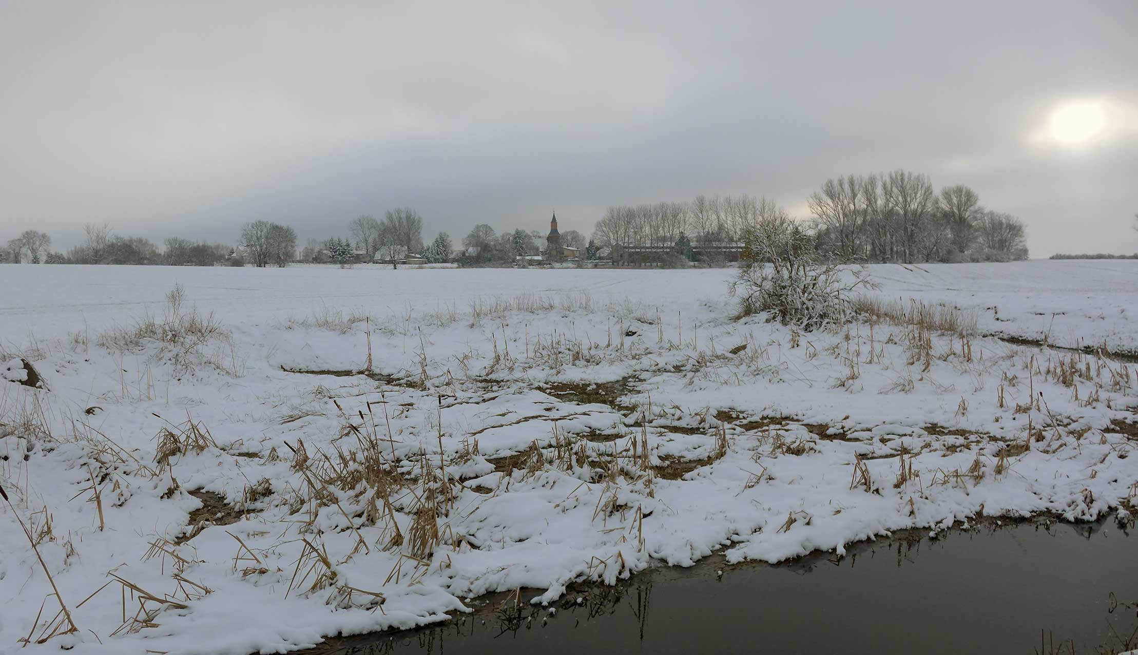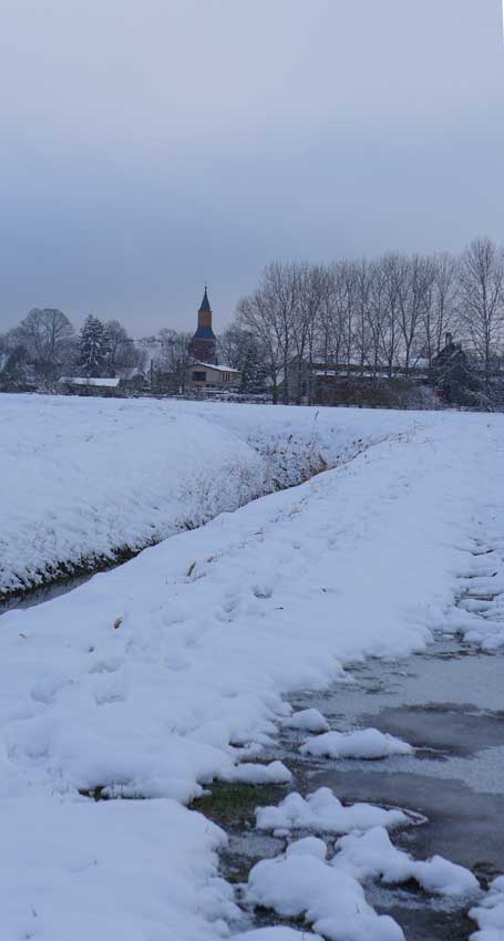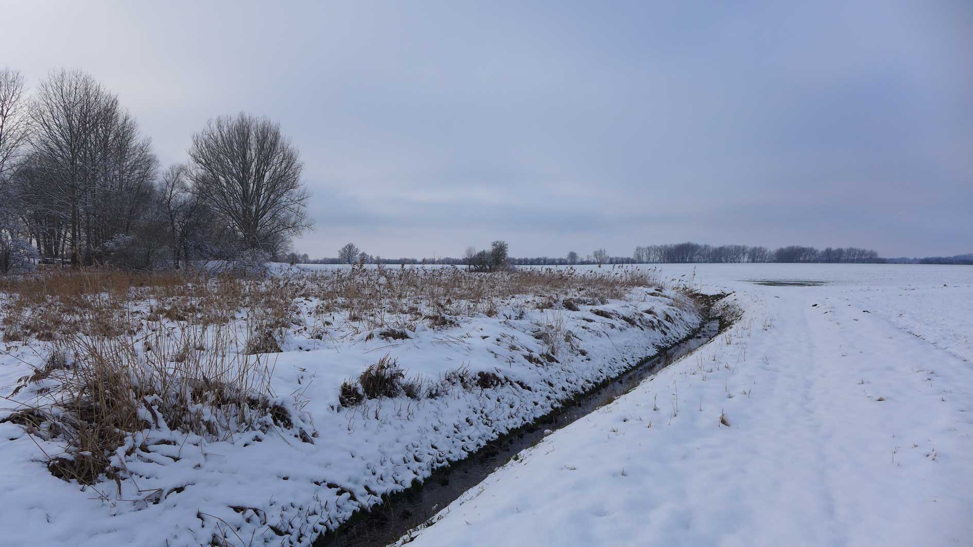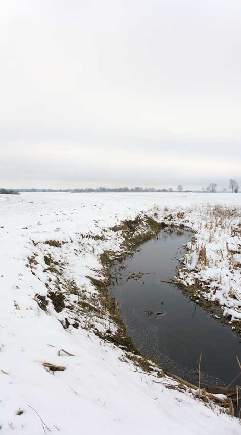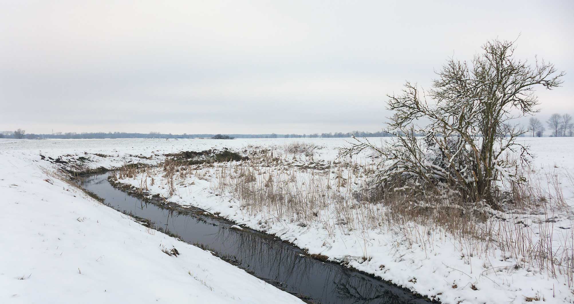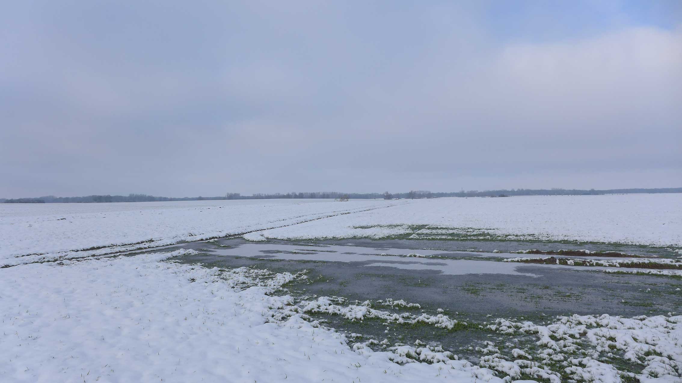 und Wasser auf den Feldern, was nicht sein sollte, wenn die Dränagen versorgt wären, aber den Bildern lieb zwischen dem zarten Grün