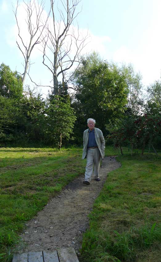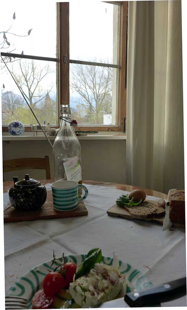 Daheim nun auch er: in den Festspielen selbst und vor dem Turm. Am Fusse seines Hauses und was für ein Turm. Im Daheim von Nossendorf damals zwei Versionen in der Zeitung, einmal mit der Nacht, auf dem Boden angekommen und dann mit dem Mädchen der frühen Jahre springender Freude im Bilde.
