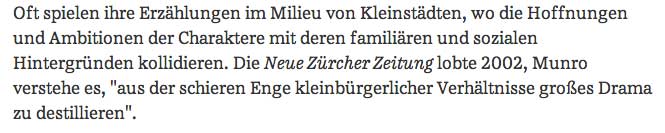 "Wir sagen nicht nur, dass sie auf bloss 20 Seiten viel sagen kann - mehr als ein durchschnittlicher Roman-Autor - sondern dass sie Tiefgang hat. Sie kann in einer einzelnen Kurzgeschichte Jahrzehnte verarbeiten und es funktioniert."