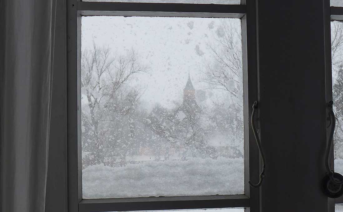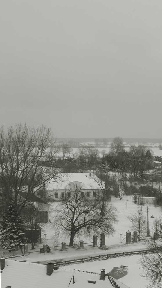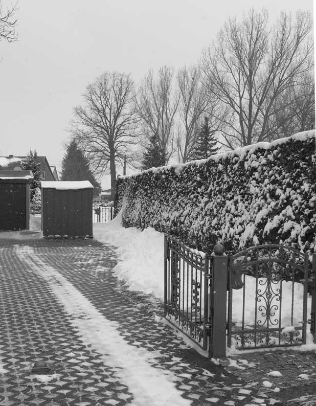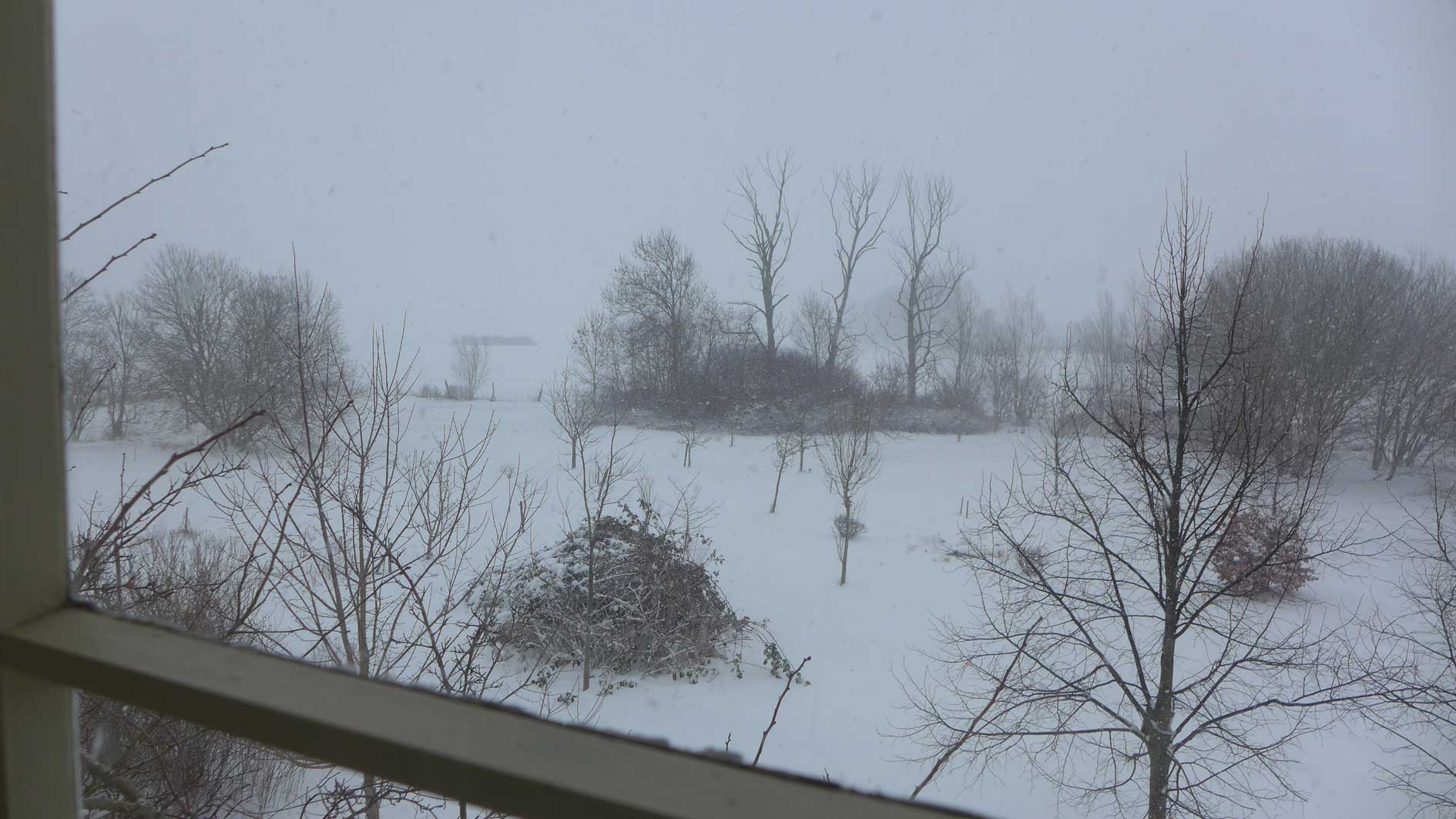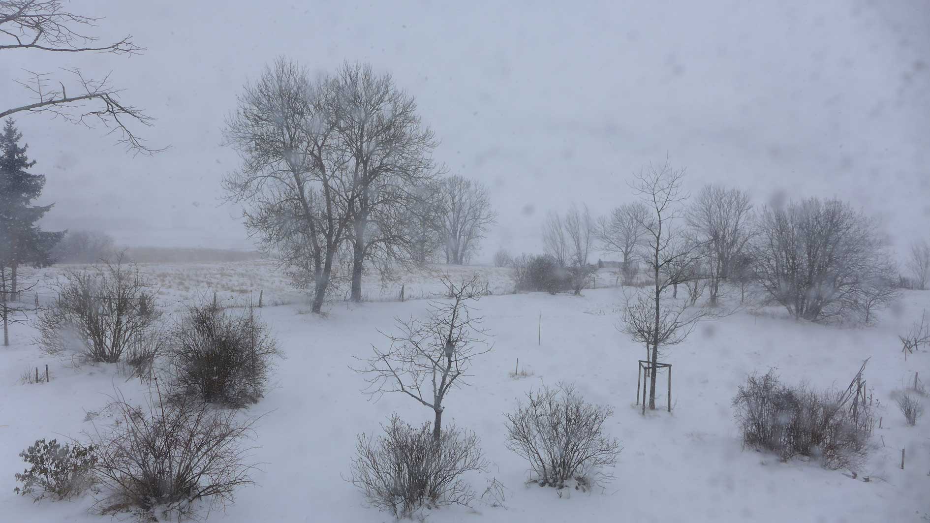 aus dem Schnee-Fenster vor 10 Jahren nach Rückwärts in den Park der neuen Alagen.