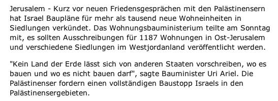 srael verkündet vor Friedensgesprächen neue Siedlungsbaupläne