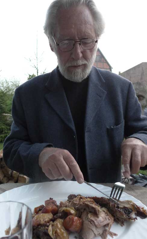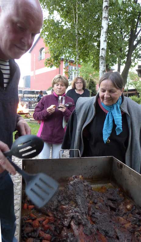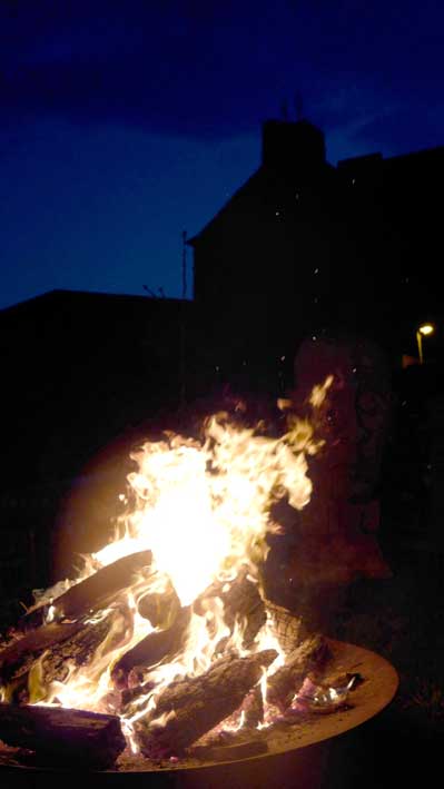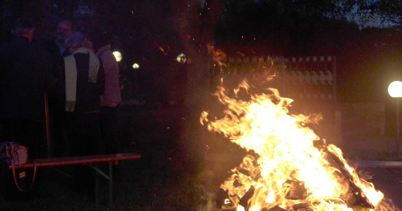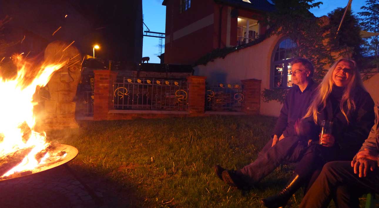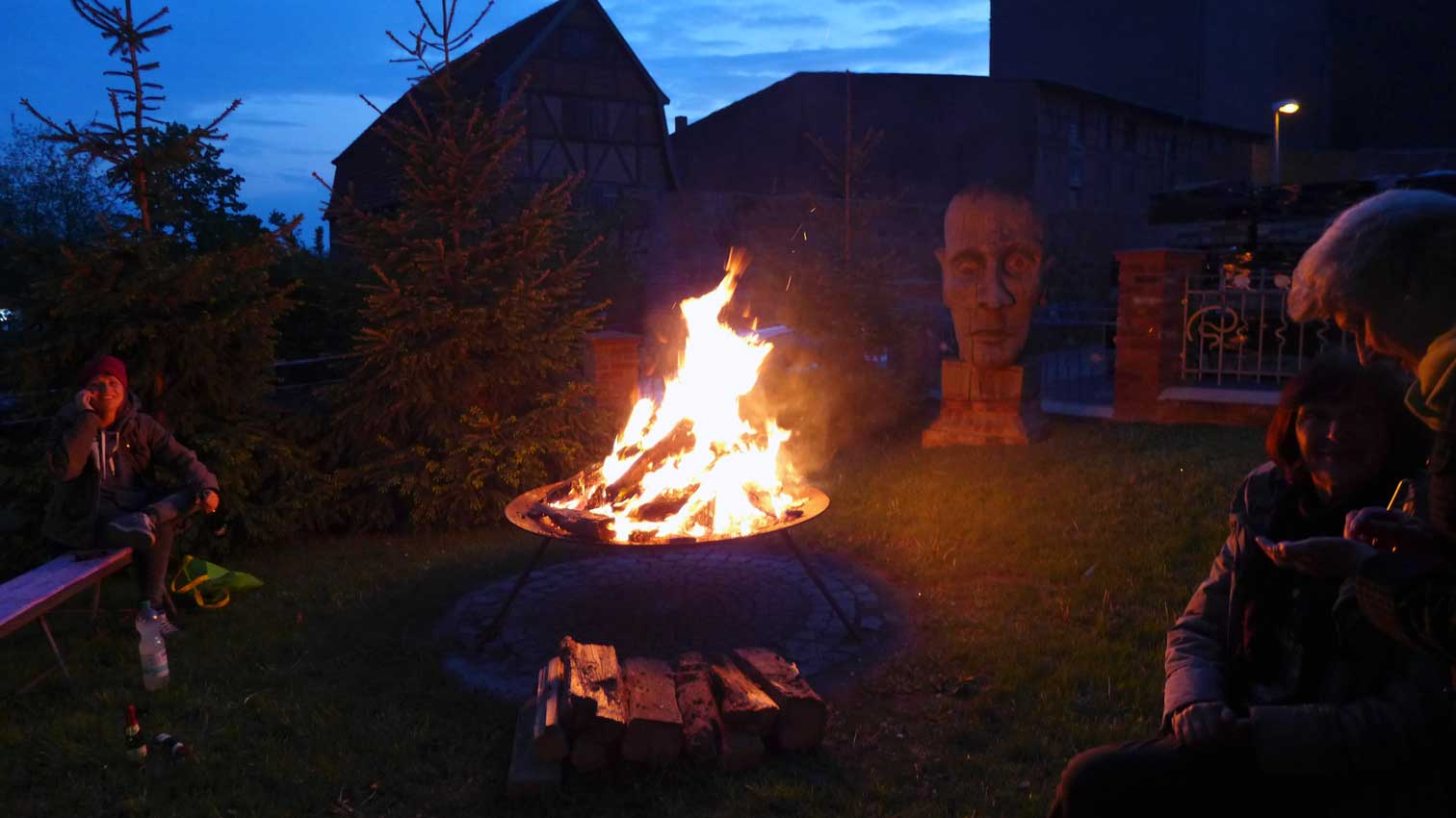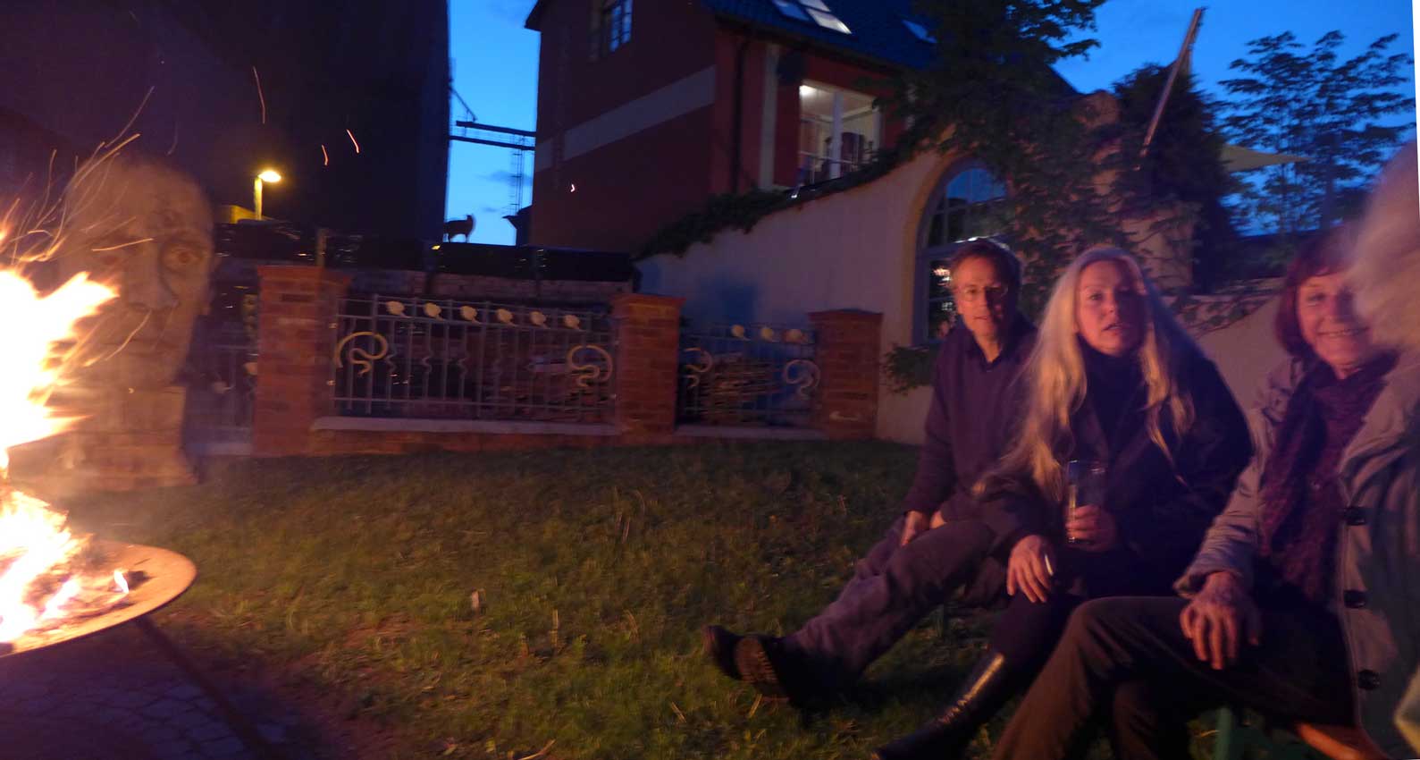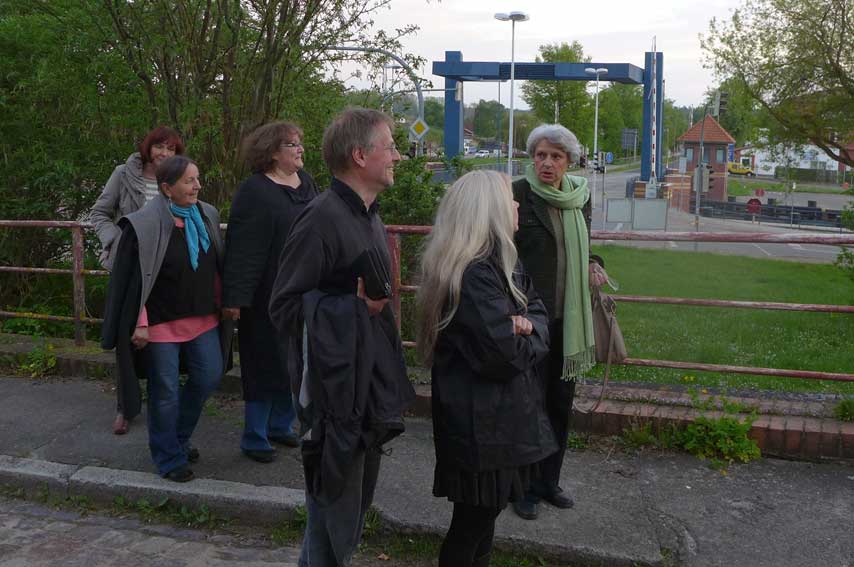 und dann erzählt G., der dort oben am Rande der Strasse hinab wohnt, von den anderen, die schwarz im geordneten Zug zu 3er Reihen mit Fackeln aussen und schwarzen Fahnen und Trommeln mit Polizei von überall her begleitet am Abend schweigend durch die Stadt zogen, immer nach 10 Reihen unterteilt von Polizei-Fahrzeugen mit filmenden Kameras nach hintenraus, 250 bis 300 Teilnehmer, so auch zum Hafen an den Fluss. Wo die Toten, Frauen und Kinder, schwammen 1945.