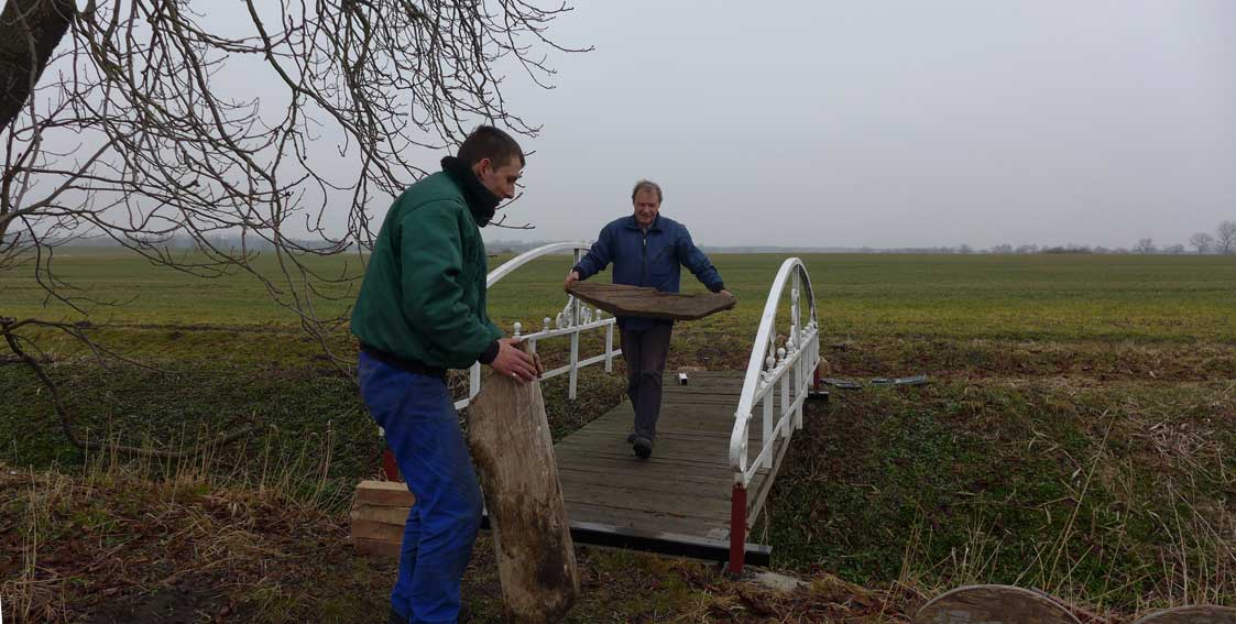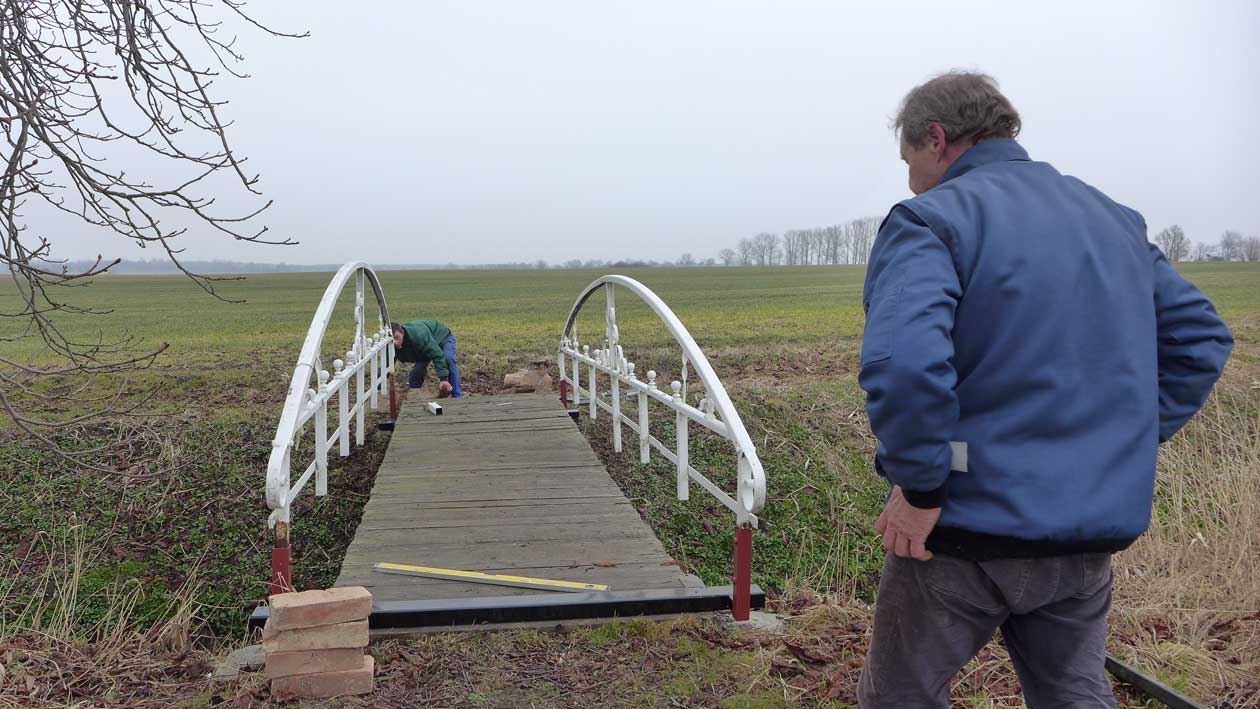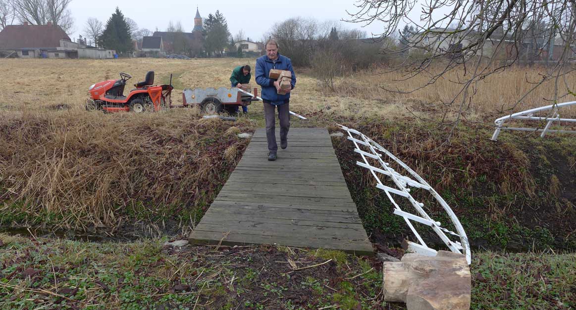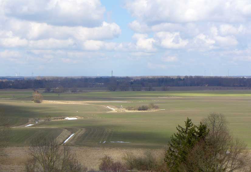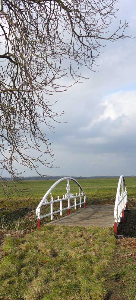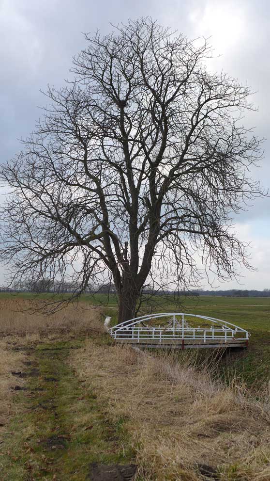 Nun ist der Turm trotzdem wieder da und so auch die Brücke über den eiszeitlichen Graben. Die Brücke aber ist eine Einladung. Manchmal angenommen, nun über die Felder den Weg suchend, den eigenen sich.