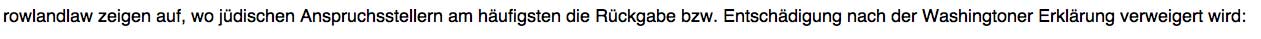 rowlandlaw zeigen auf, wo jüdischen Anspruchsstellern am häufigsten die Rückgabe bzw. Entschädigung nach der Washingtoner Erklärung verweigert wird: