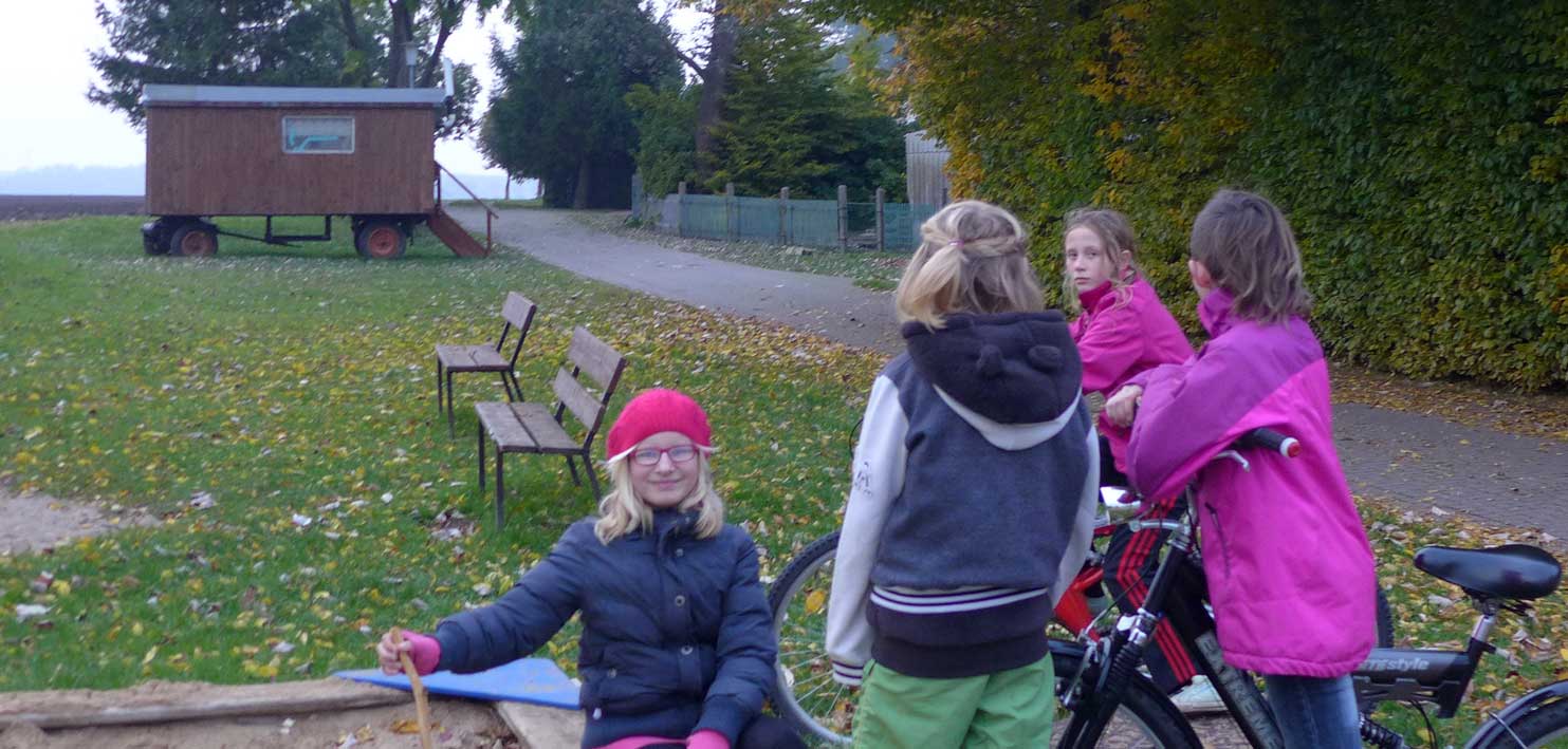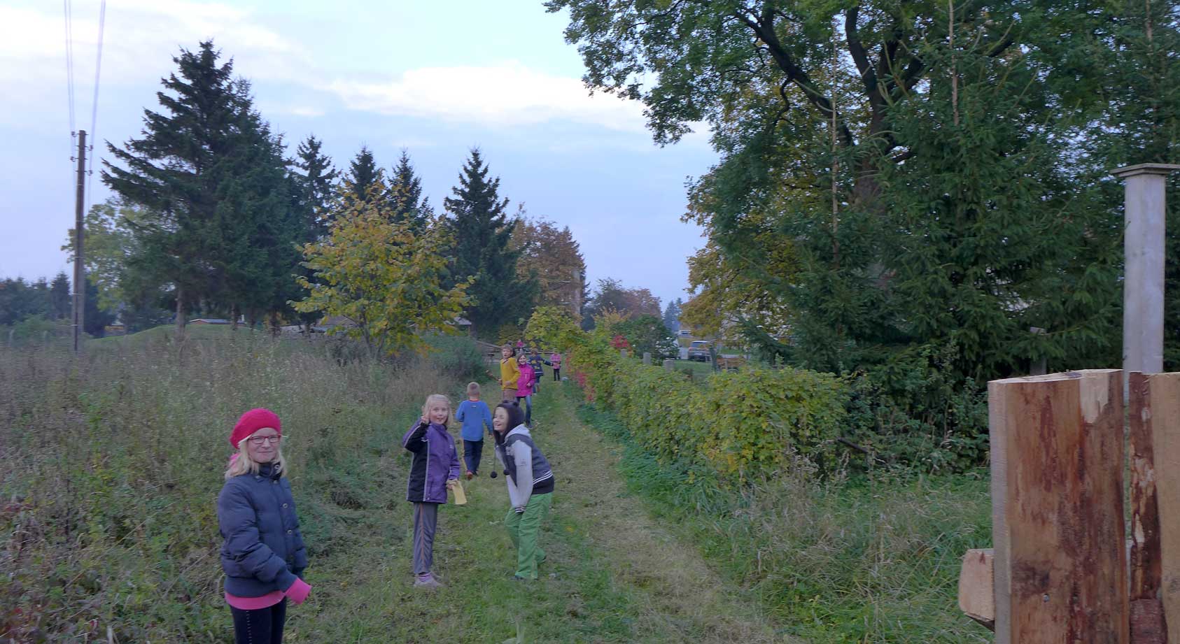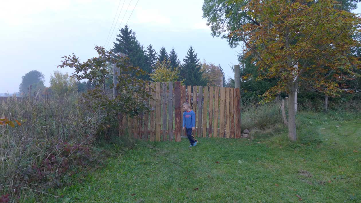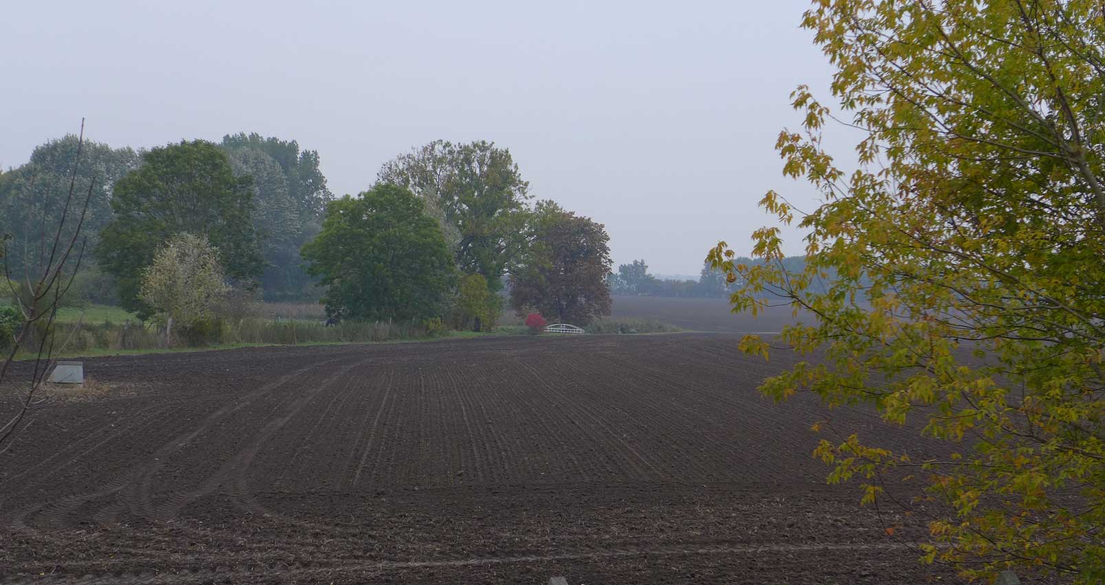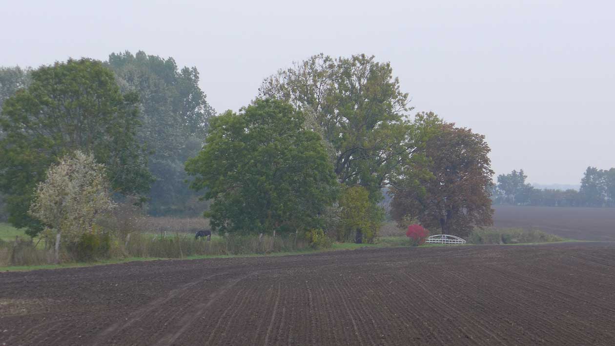 Die Brücke auf die Felder von hinten.Wo früher zwischen Dorf und Feldern die Feldscheune stand und wo die im Sommer schnell geernteten Garben des Feldes, zwischengelagert, im Herbst gedroschen wurden