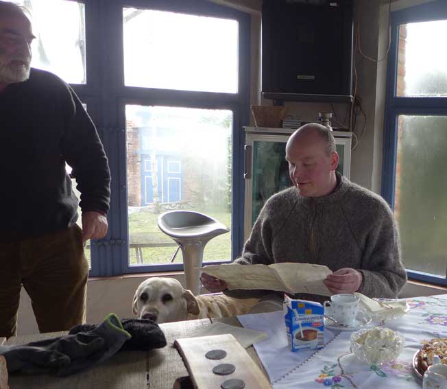 zu zeigen und zu sehen, was die Ernte des letzten Jahres brachte. So im Speicher am Hafen als neuen Ort, wo das geht, aus eigener Initiative mit mobilisierter Hilfe von hier und im Haus.
