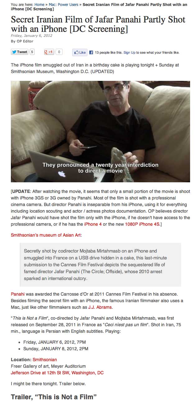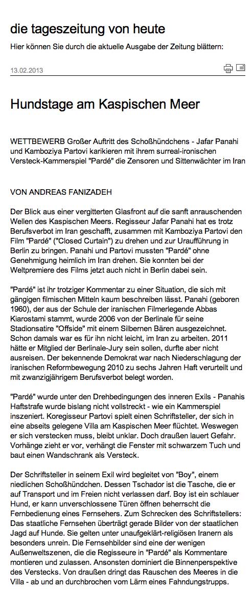 Mit grossen Interesse war der Film zu erwarten, der aus dem Nein der Regierenden in Teheran entstand. Hausarrest und Berufsverbot. Was macht einer, der sich äussern muss, auf Film.
