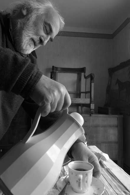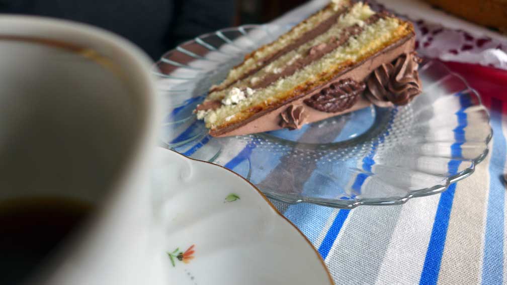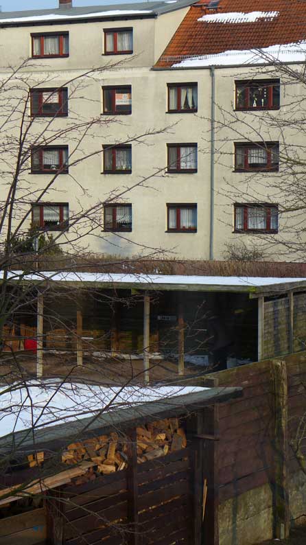 und immer wieder, wo wir sitzen mit Blick auf die Kirche als Garagen heute