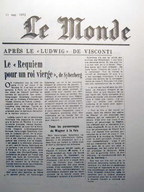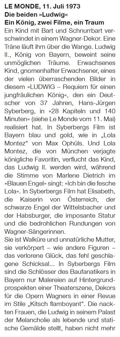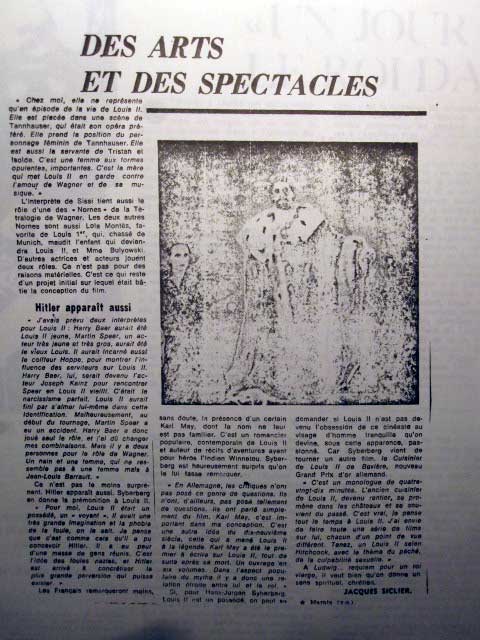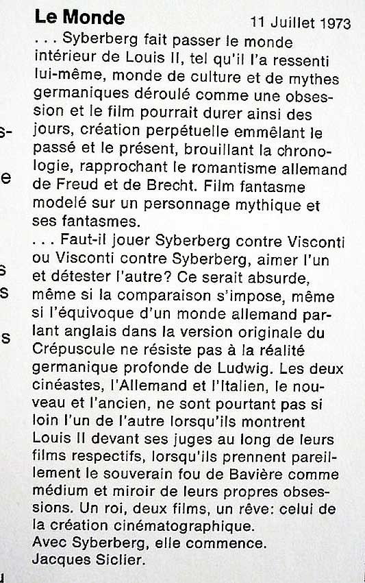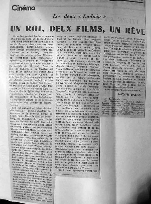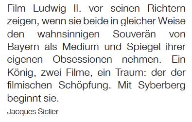 Siclier entdeckte das, was dann alle fanden. Und mit diesem Ludwig begann eine neue Zeit für Wagner in einer neuen Generation und gerade jenseits der Grenzen besonders in Frankreich. Und es war die Fährte gelegt zu jenem Hitler als Film aus Deutschland, der dann den Weg nach Amerika führte.