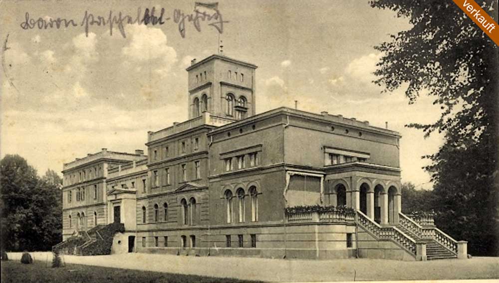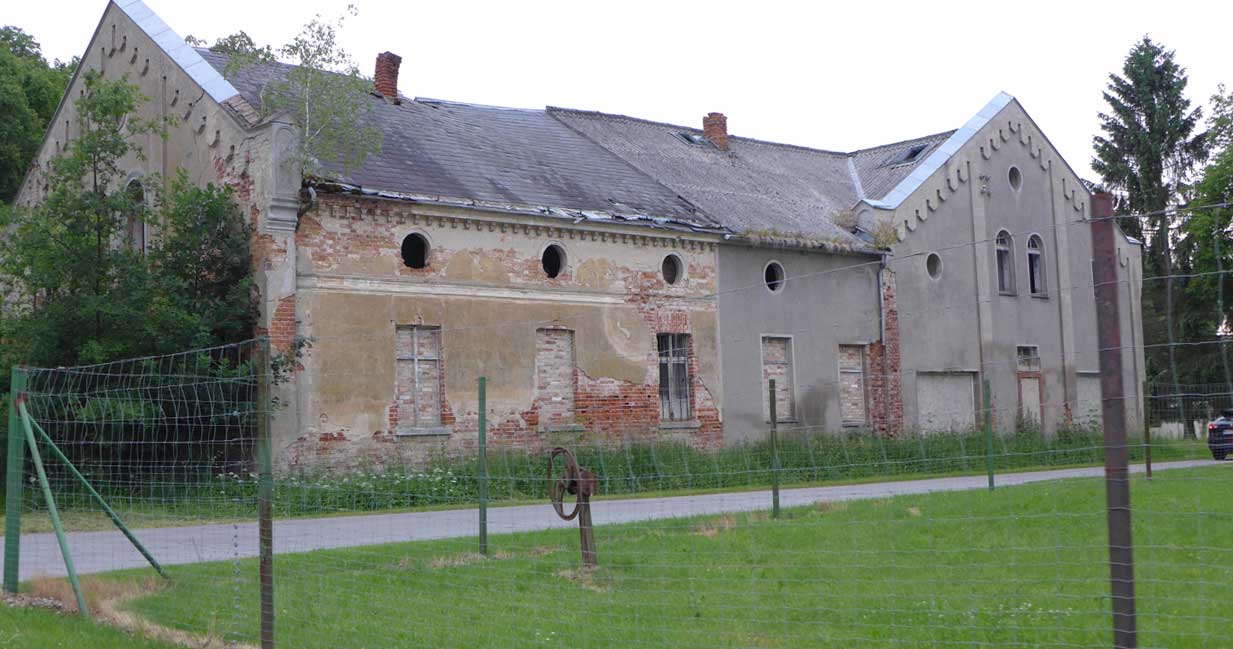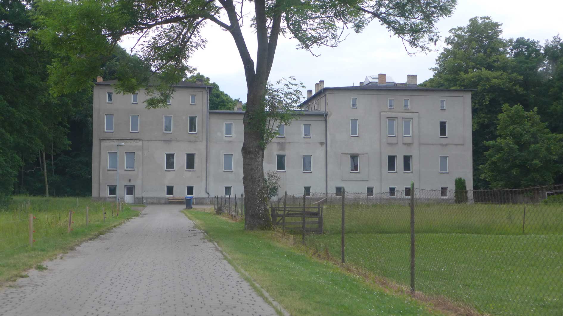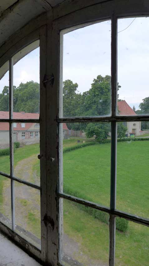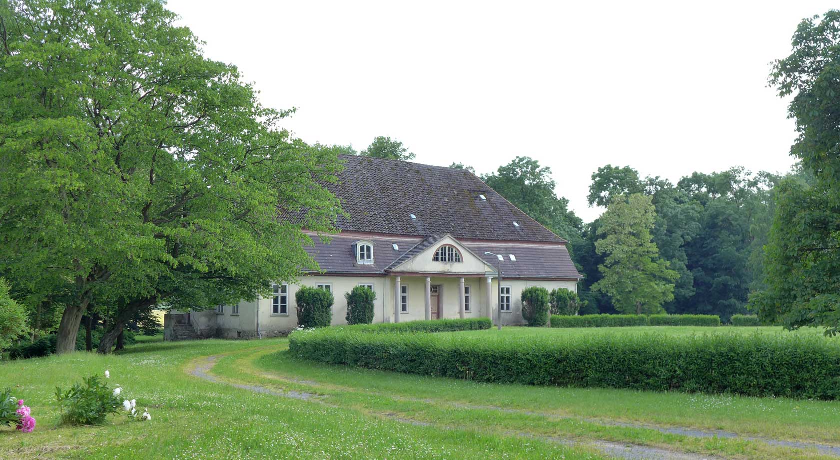Der mittelalterliche Turm im Park zeugt von der Rittengutseigenschaft des Ganzen an der Trebel als Grenze nach Westen.