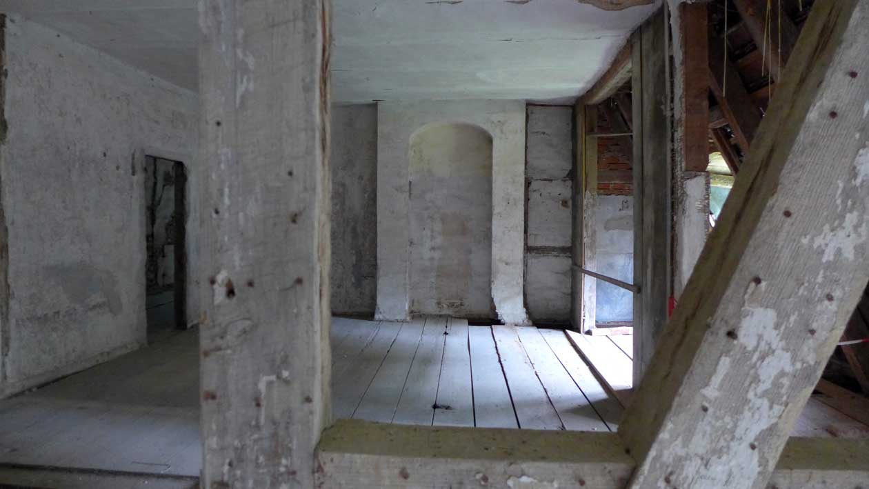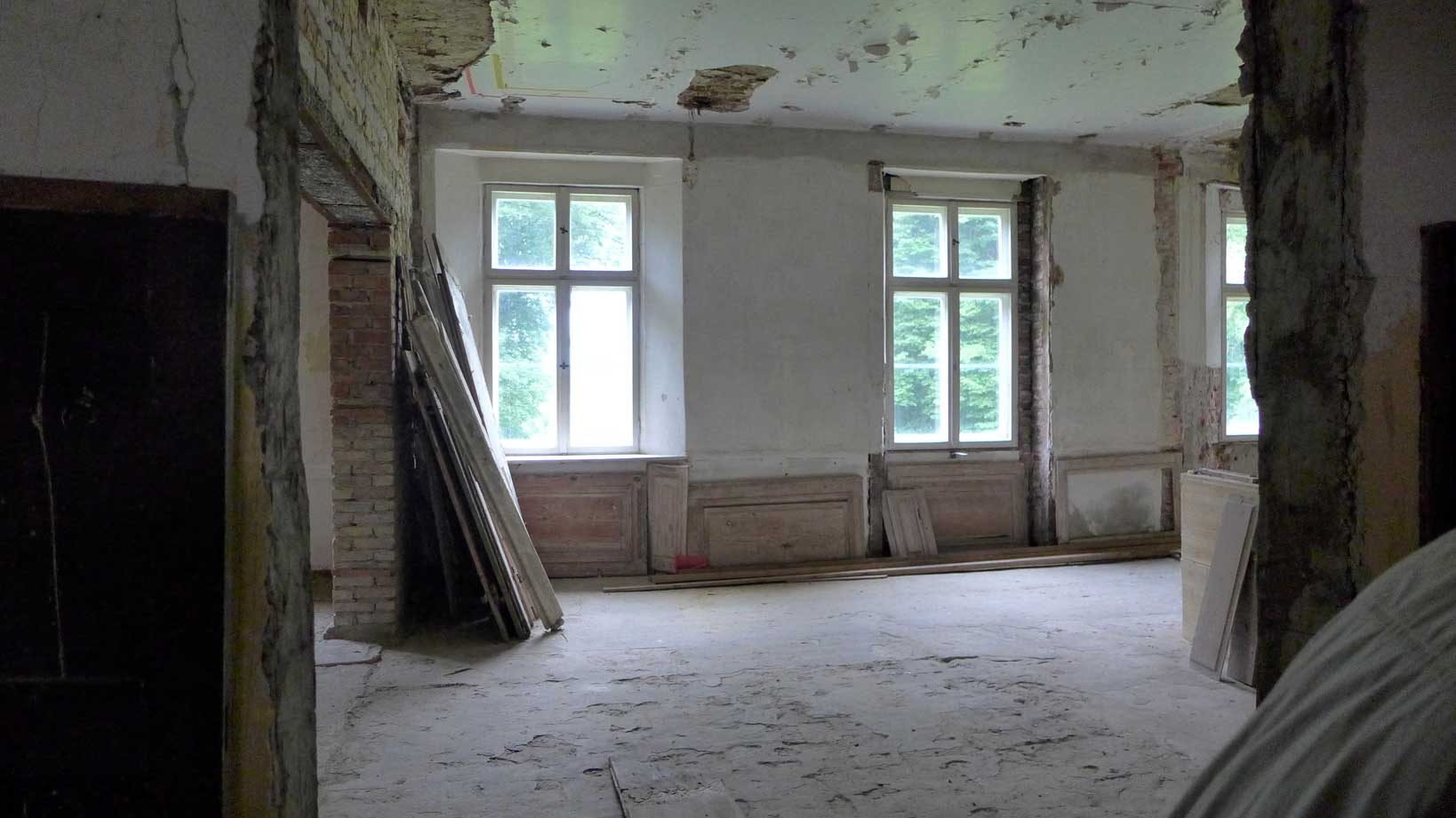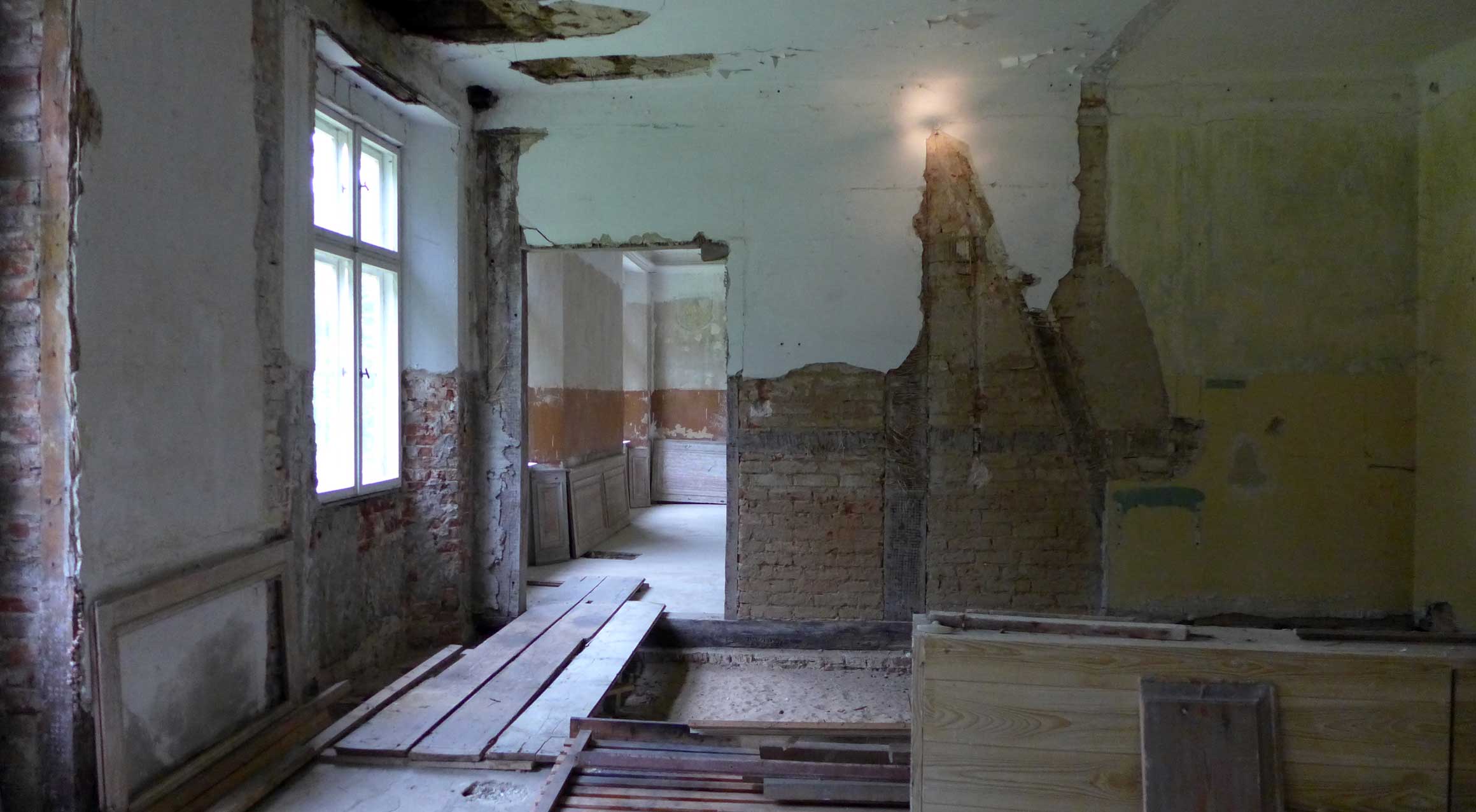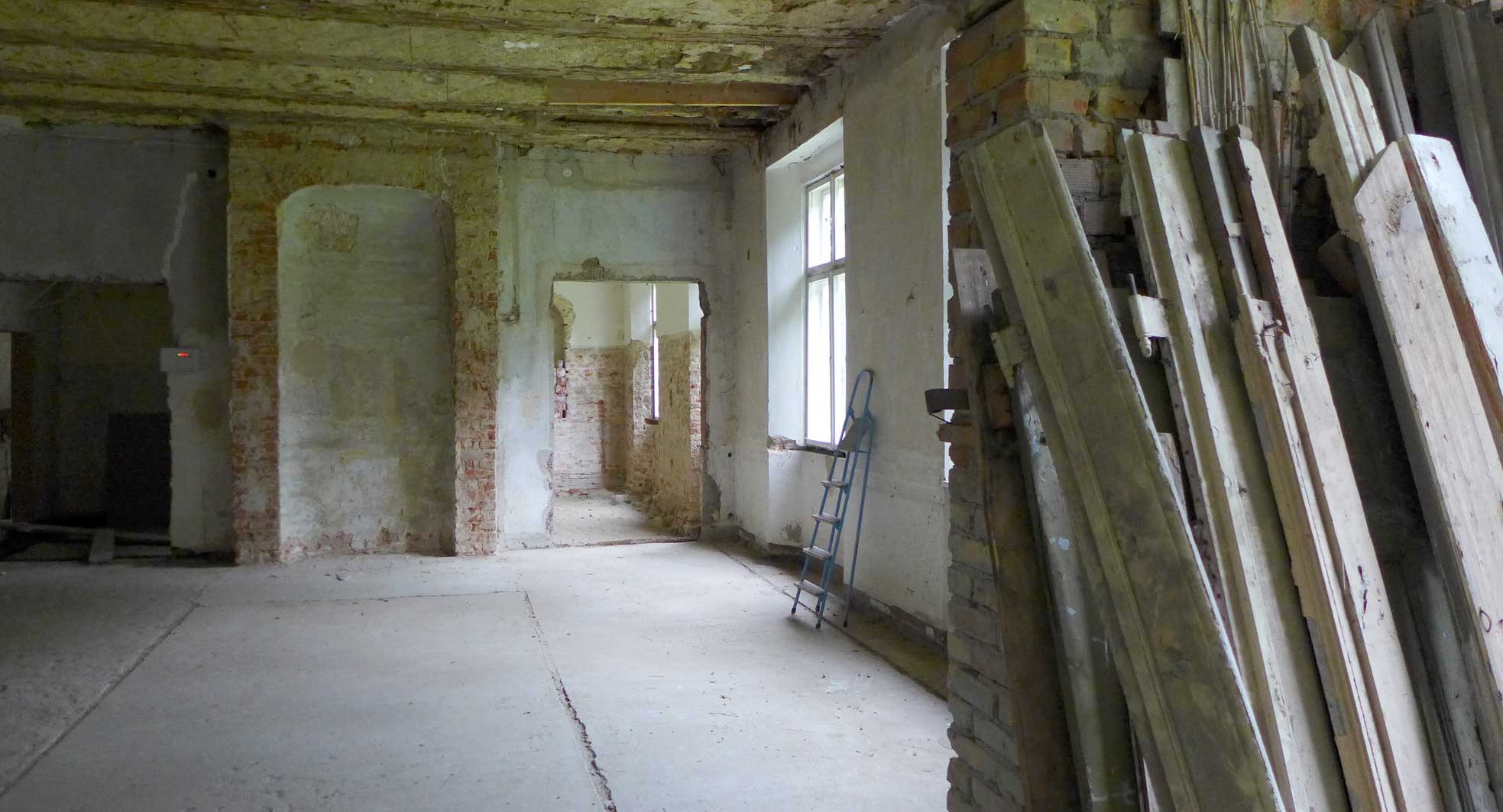und dann die Räume im Zustand der Entfernung der DDR-Wände aus fremden Materialien stehengeblieben