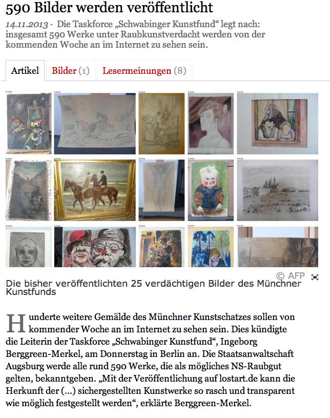 Als das Bild dann im Handel auftauchte, teuer versteigert, nahmen wir es an uns ohne Verfolgung des Weges unredlicher Gewinne dazwischen