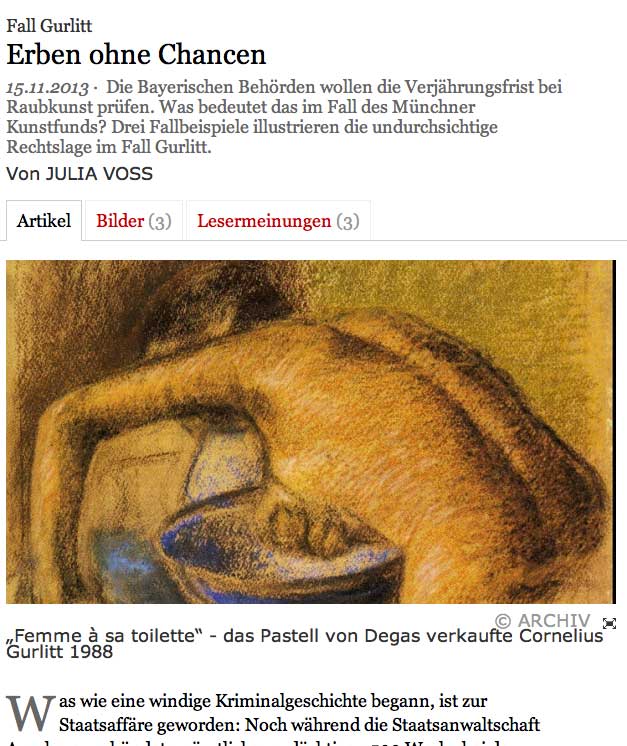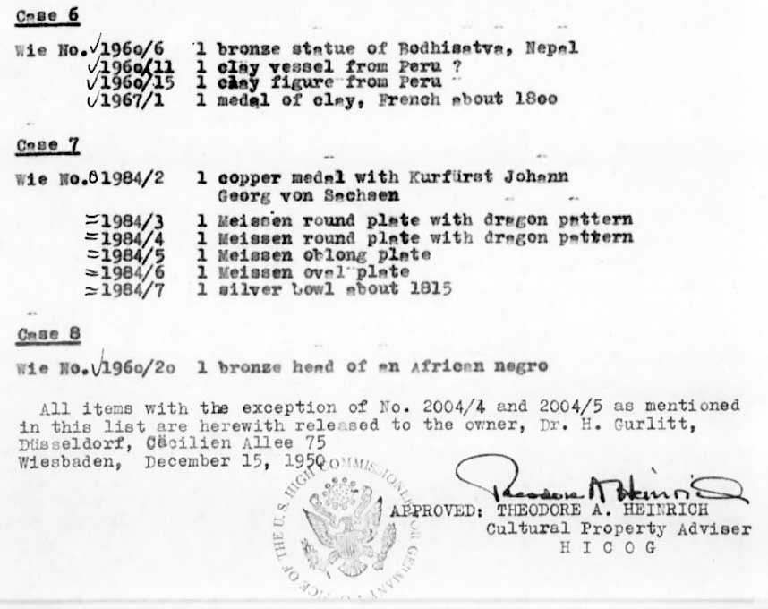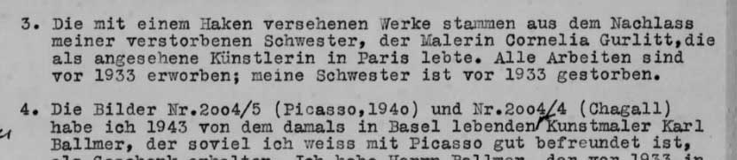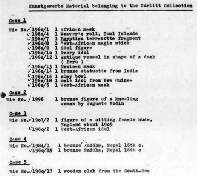 Die Aufstellung der Liste von Hildebrand Gurlitt, dem Bruder, für die Amerikaner nach 1945 bezeichnet den Stand , der Sammlung bis 1950 in Wiesbaden, um die es heute in München geht. Den persönlichen Nachlass seiner 1919 durch Suicid gestorbenen Schwester>>>