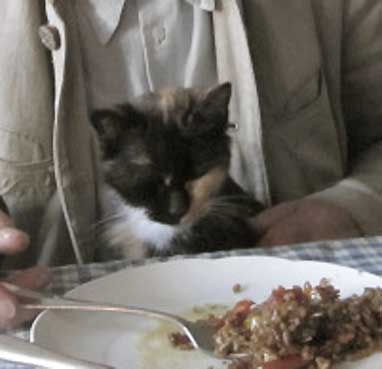 Und dann nach soviel Jahren die schwarze Katze der Lieselotte wagt sich ins Haus. Nachts ins Mädchenzimmer durchs Fenster gleich neben der Küche, die nie ins Hus ging auch bei der L. nicht - und nun ist eine andere da.