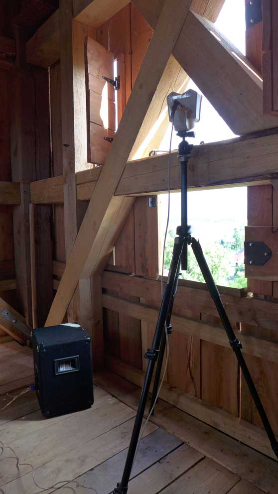 im Turmstudio zur digit. Wiedergabe des org. Glockentons aus N.