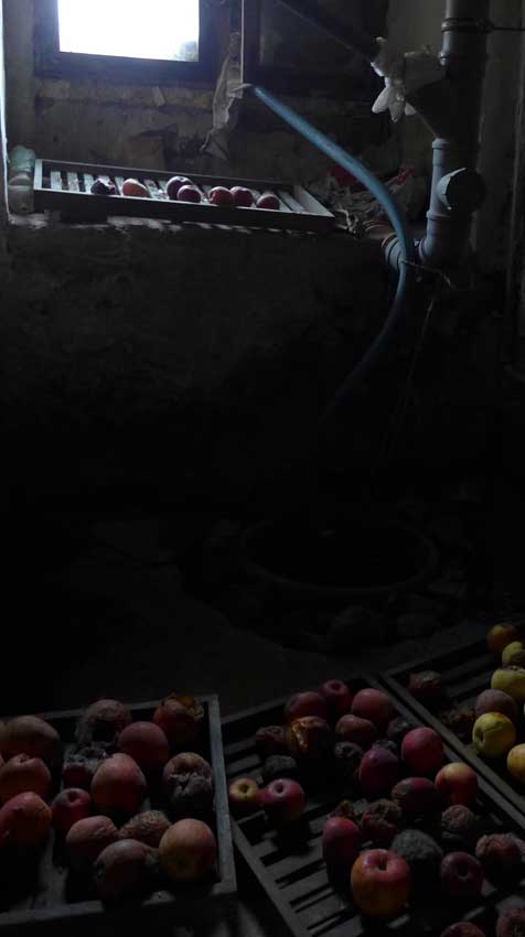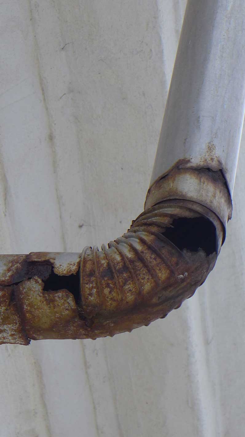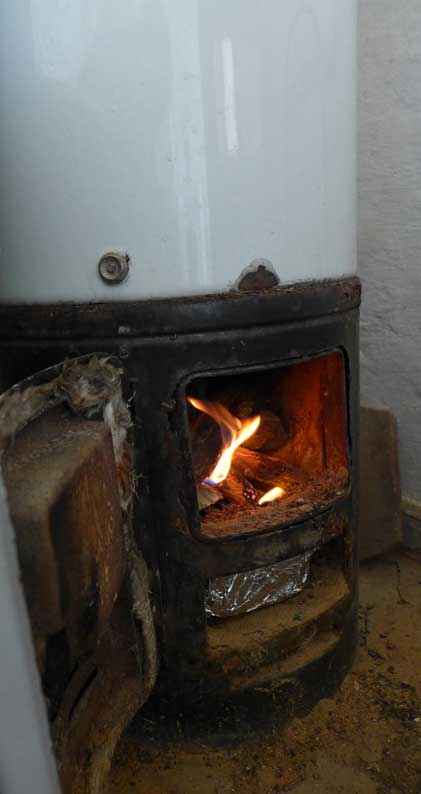 vor 10 Jahren als Provisorium installiert und dann vernachlässigt, und sicher demnächst zu ersetzen, interessiert hier der Abzug um die Ecke an allen Öffnungen im Inneren vorbei nach oben, obwohl wir gelernt ahben alles müsse immer dicht sein, dass es gut zieht. Die Adhäsion ins Innere sich verbunderner Strömung machts wohl, dass auch hier alles besten funktioniert, und Gefahren am Stein sind nicht.