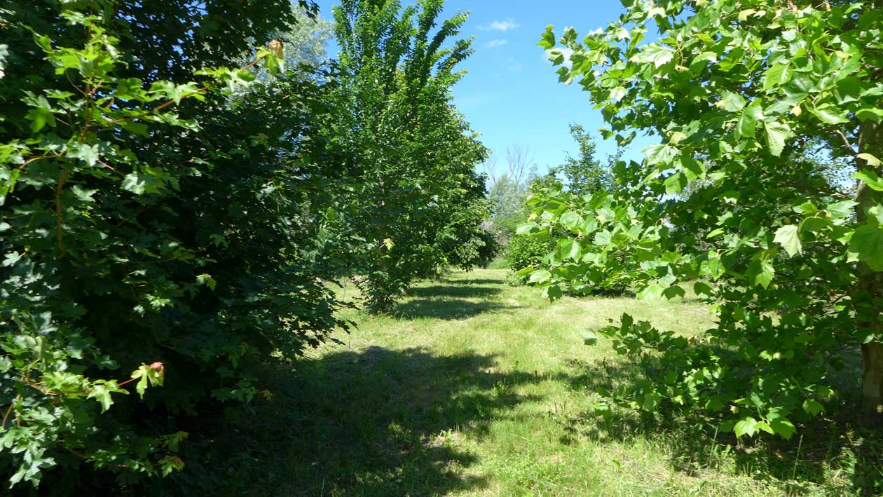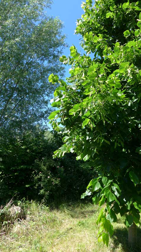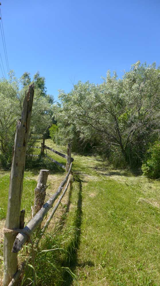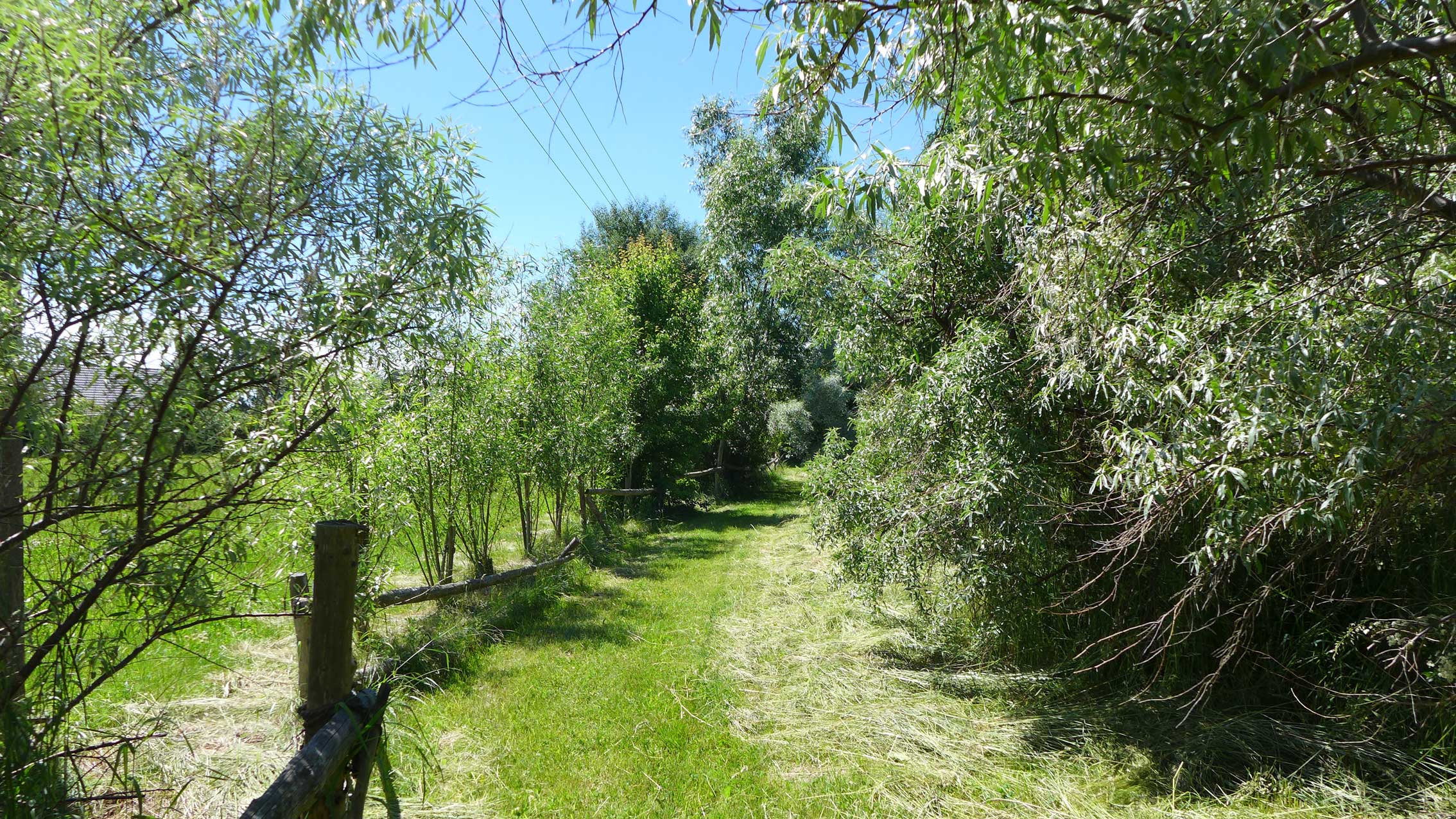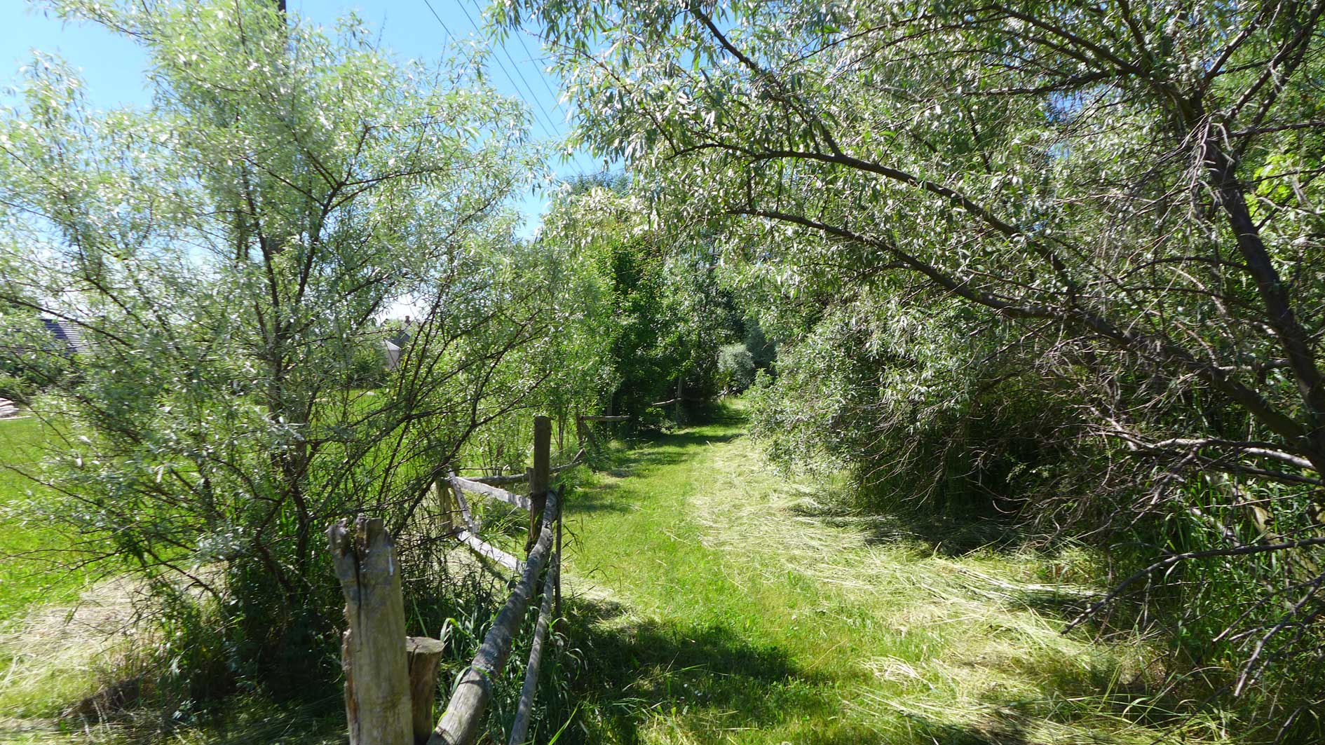Der Weg ab zu den Feldern ist ausgereift und die ehemalige Grabensituation -nun verrohrt- wurde zum Park, als die Flurerneuerung den Graben aus eiszeitlichen Zeiten nicht wieder herstellte.