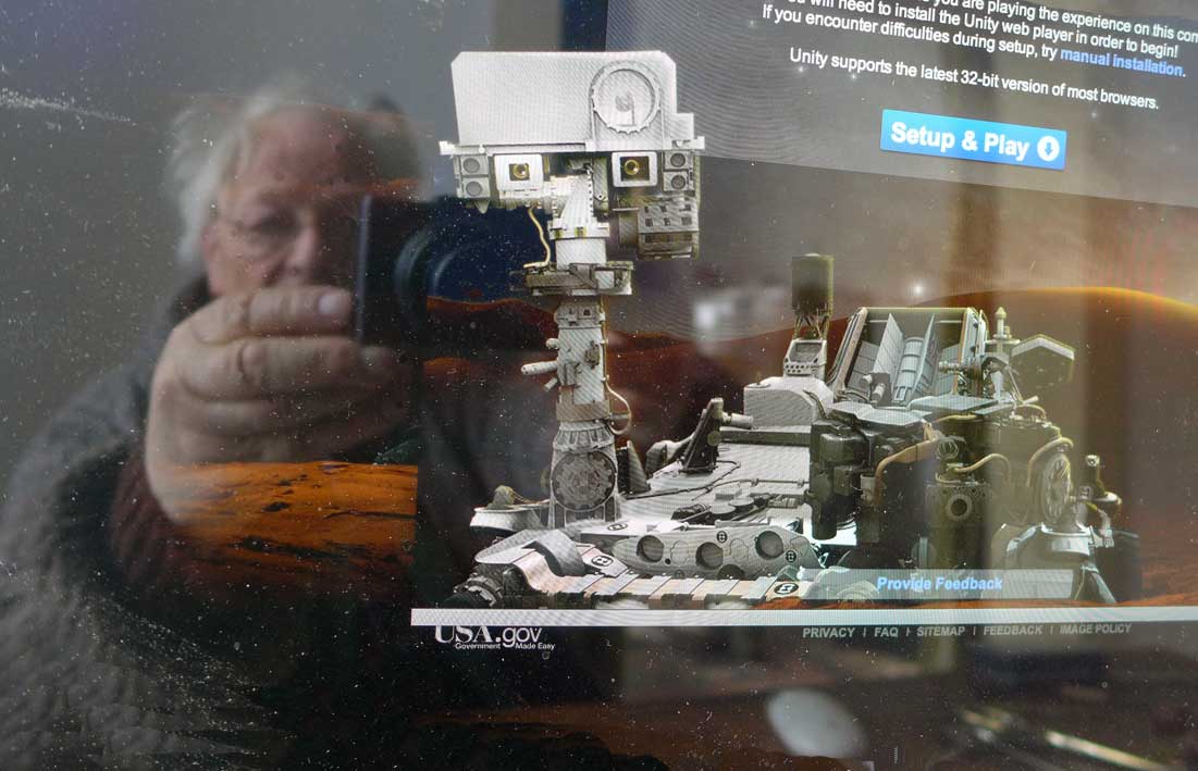 die Staubkörnchen auf dem Bildschirm in der Sonne gemahnen uns