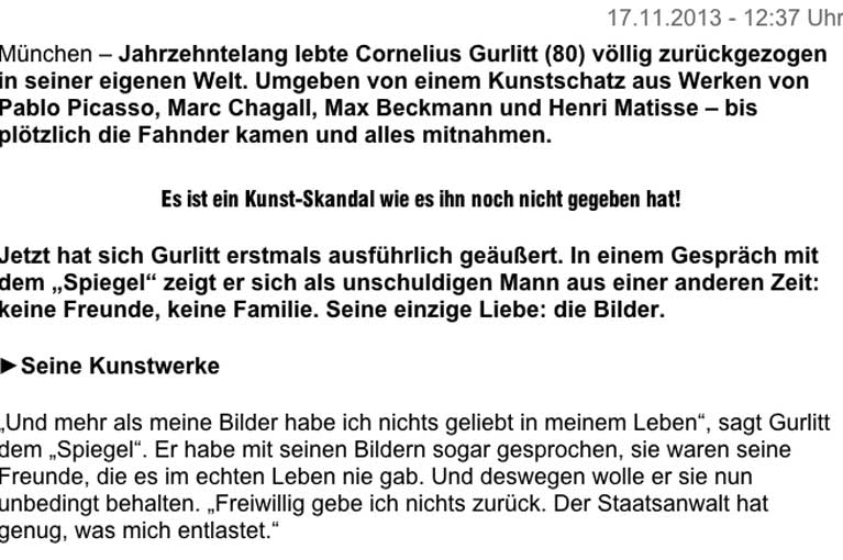 17.11.2013 · Hier die Moral, dort das deutsche Recht: Cornelius Gurlitt verlangt seine Kunstsammlung zurück. Und so wie es aussieht, hat er das Gesetz auf seiner Seite. Der Fall entwickelt sich zum Skandal.