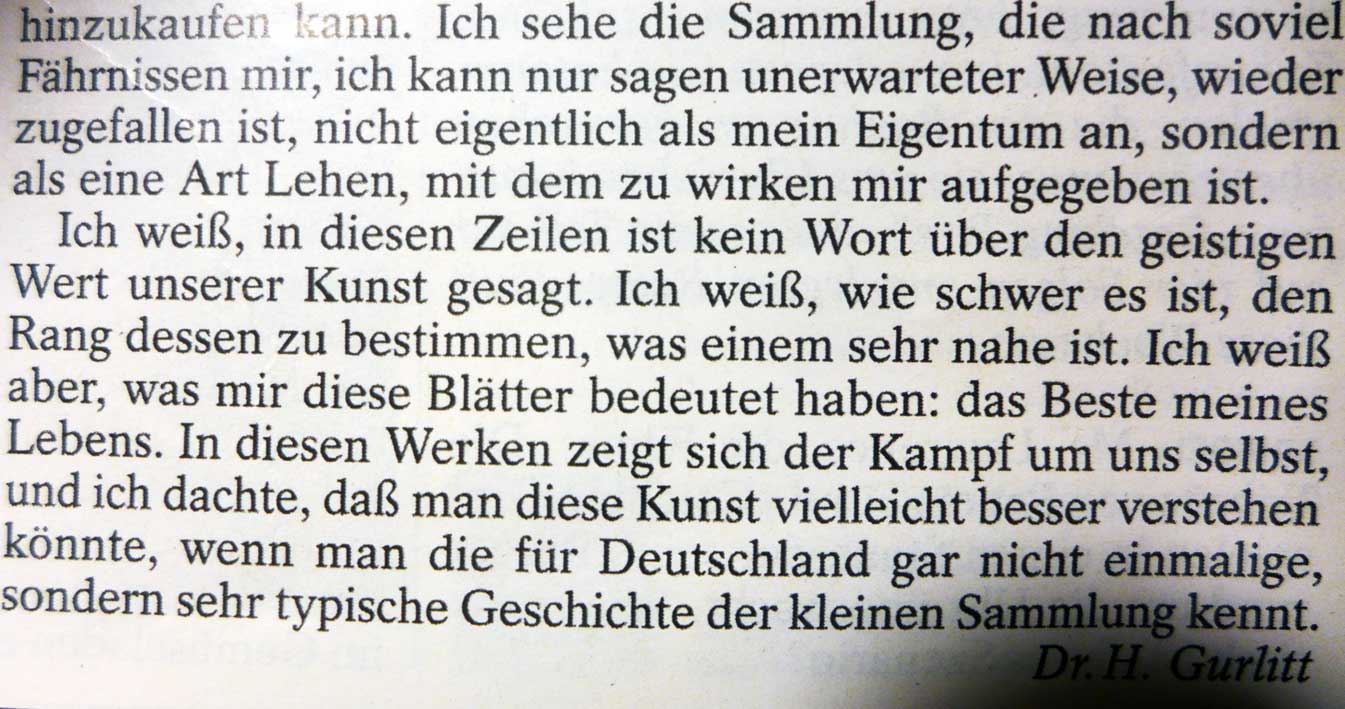 Verpflichtungen und bindende Erklärungen als Basis von Zahlungen und Herausgabehandlungen aus solchen Zusammenkünften wie in Washiungton 1998( Washington Conference on Holocaust-Era Assets )in Sachen Kunst und Handel mit ihr sind ungeeignet der Kunst selbst und den Vorgängen jner Jahre gerecht zu werden, Kunst-Werke deren Rettung aus den Vernichtungsabsichten der Bilderstürmer von 1933 bis 45 erhalten sind. Wie die bisherige Praxis bezeugt, schaftt das Unfrieden und böse Folgen unter Beteiligten und Ländern, wenn es zu Grenzüberschreitungen und eigentlich unerlaubten und ungesetzlichen Vorgängen in Sachen Kunst führt, indem Kunst ausgeführt wird, die die Länder als im Lande zu bleiben fixiert haben. Das alles ist geschieht ohne Gestzeskraft, stillschweigend, gegen die Gestze und wird wie zwangsweise Reparationszahlungen, Enteignungen unter Freunden und in Institutionen der Museun und öffentlichen Handlungen selbst mit öffentlichen Druck durchgeführt. Kritisch wird es wie im Falle Gurlitt, wenn ein freier Mensch als Erbe solcher Erbschaft der Zeit aus ohne vom Druck der Zeit als aus ihrer Herausgefallener da nicht mitmacht und nun zwangsweis enterbt und öffentlich vorgeführt wird. Man sieht daran die Absurdittät der Vorgänge selbst und die Unfreiheit unserer Zeit. In allen Bereichen der Justiz und der Regierenden und der Medien, wenn man die Vorgänge verfolgt. Wir leben auf brüchigem Eis. Die Demokratie, das Recht, der Friede selbst stehen zur Dispostion. Das Interesse am Wert der Kunst auf den Märkten bringt es an den Tag. Die Kunst selbst ist das Opfer. Die eigentlich als ein öffentliches Gut zu retten war. Selten waren die teilnehmenden Menschen an diesen Vorgängen so sehr auf ihrer Seite. Man sollte sie zeigen dürfen, als Beispiel einer erfreulichen Rettungsaktion aller Beteiligten mit dem Verbot des Handels mit ihr aus Gründen der Profitmaximierung. Denn sie gehört uns allen.