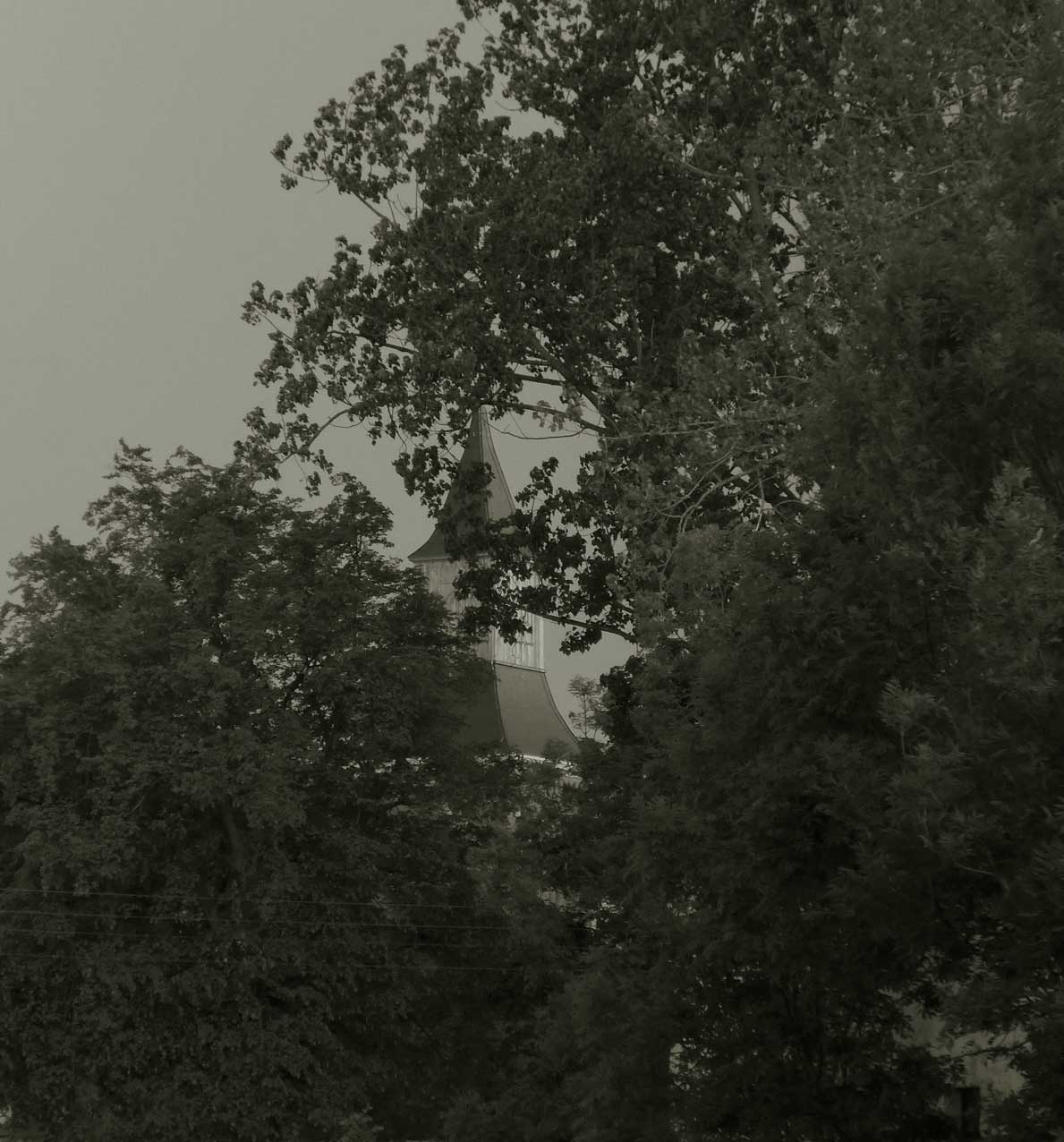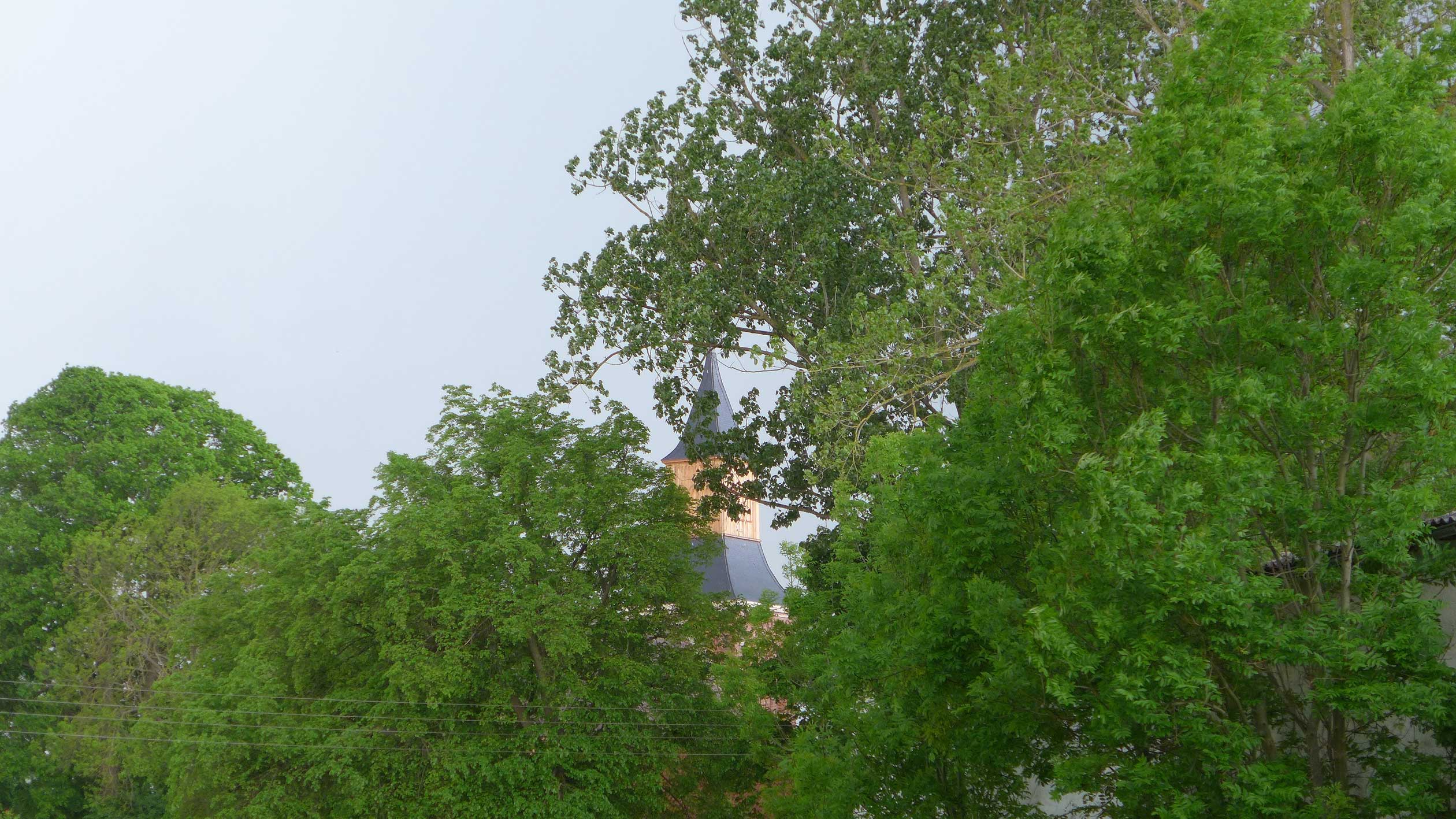 der Turm vom Haus - Fenster zu sehen.