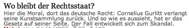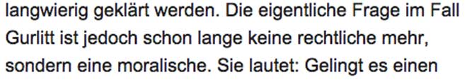 Man macht die Gurlitts zu Händlern zwischen den Welten. Genau das waren sie auch. Und eben da liegen ihre Verdienste. Es gibt bisher keine Aussage übler Nachrede. Wohl immer haben sie helfend gerettet, Menschen und Werke. Er war ein guter Zeuge und Täter eben beider Welten im besten Sinne. Weniger Händler als Vermittler. So manch einer mag ihm damals die Hände geküsst haben, dass ers barg, auch noch gab, in der Not. -Wie so mancher jüdische Händler dem Künstler in der Not. Traurig, wenn der Künstler danach Restitution einklagte, weil in der Not zu wenig gegeben und erhalten , wenn beide damals in der Not nicht mehr hatten als das Ausgetauschte-. Man sollte ihn, den Händler in schweren Zeiten auch hier nicht verfolgen. Und ihm eher danken, auch in seinem schwer lastendem Erben. Nicht Zwietracht sondern Verstehen nach allem Hader und einiger Trauer vielleicht ist hier das Gebot der Stunde. Eine Milliarde steht provokativ im Raum. Das weckt falsche Erwartungen. Geben wir ihnen nicht nach. Und den Gurlitt in München, lasst ihn leben - mit seinem Schatz, er ist ein anderer, der unser gemeinsamer ist. Aber gemeinsamer. Nicht trennender. Er hat uns darauf gebracht. Erbschaft seines Vaters zwischen den Welten, in seiner Person, wie er ist. Gerade so. Das Bild oben von ihm kommt aus dem SPIEGEL. Lange hat der dazu gebraucht. Sei es auch der Unsere. Seitdem schlagen die Wogen noch mal höher. Vielleicht hilfts.