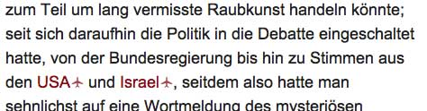 Es ist nicht gut für die das eigene Profil, wenn lobbyistische Pressurgroups über die Ländergrenzen das kulturelle Leben über Kontinente bestimmern. Das alles geschieht ausserhalb der souveränen und demokratisch ausgehandelten Gesetze der betroffenen Länder nun durch eben solchen Druck, der Anlass der Verfolgung jetzt ist. Nun zwischen den Staaten.