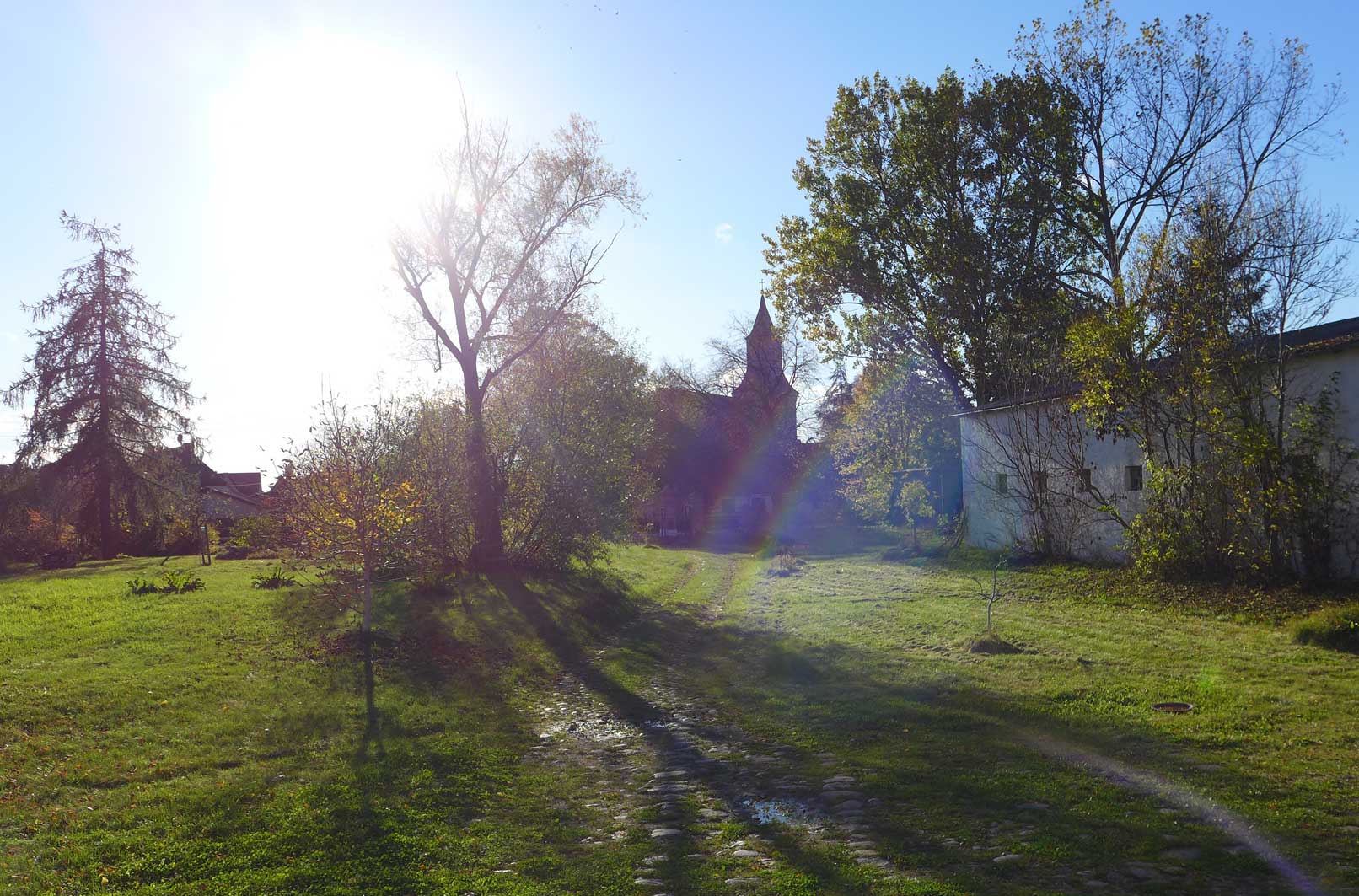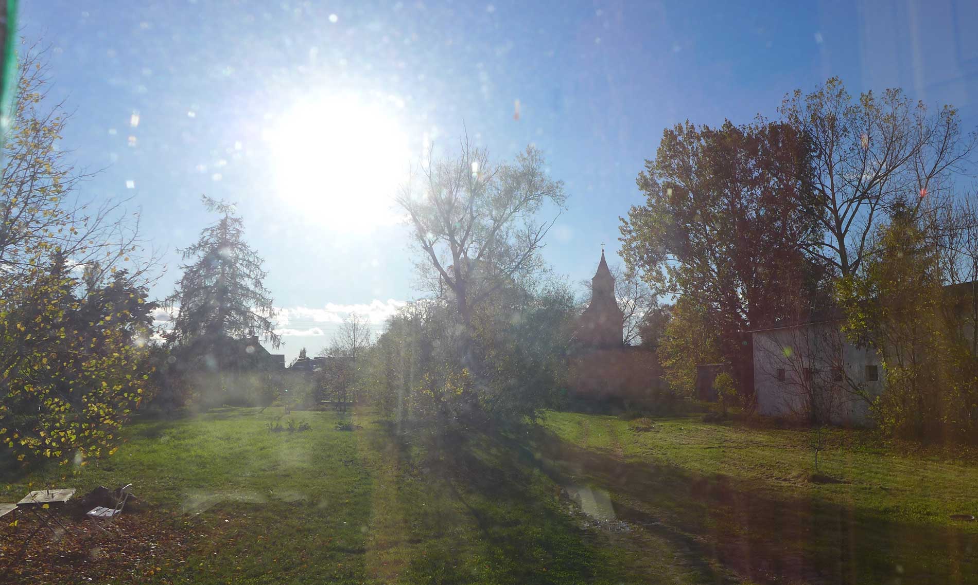 am Abend noch eine kleine Fahrt nach Demmin zu den Freunden am Platz der ehemaligen Heilig Geistkirche dort. Heute Garagen der DDR und über, hinten Plattenbauten der alten Turm von St. Boro,äi.