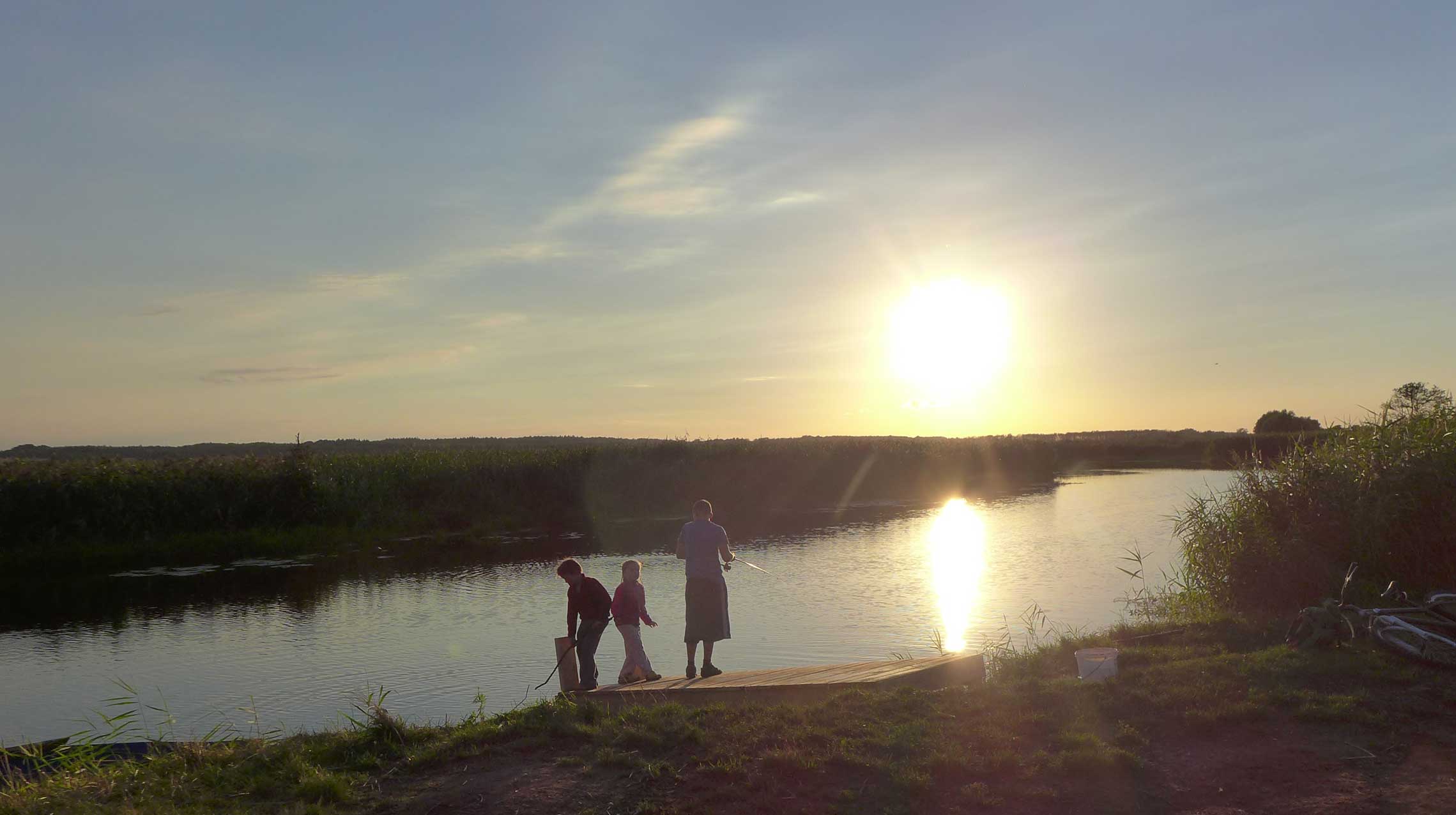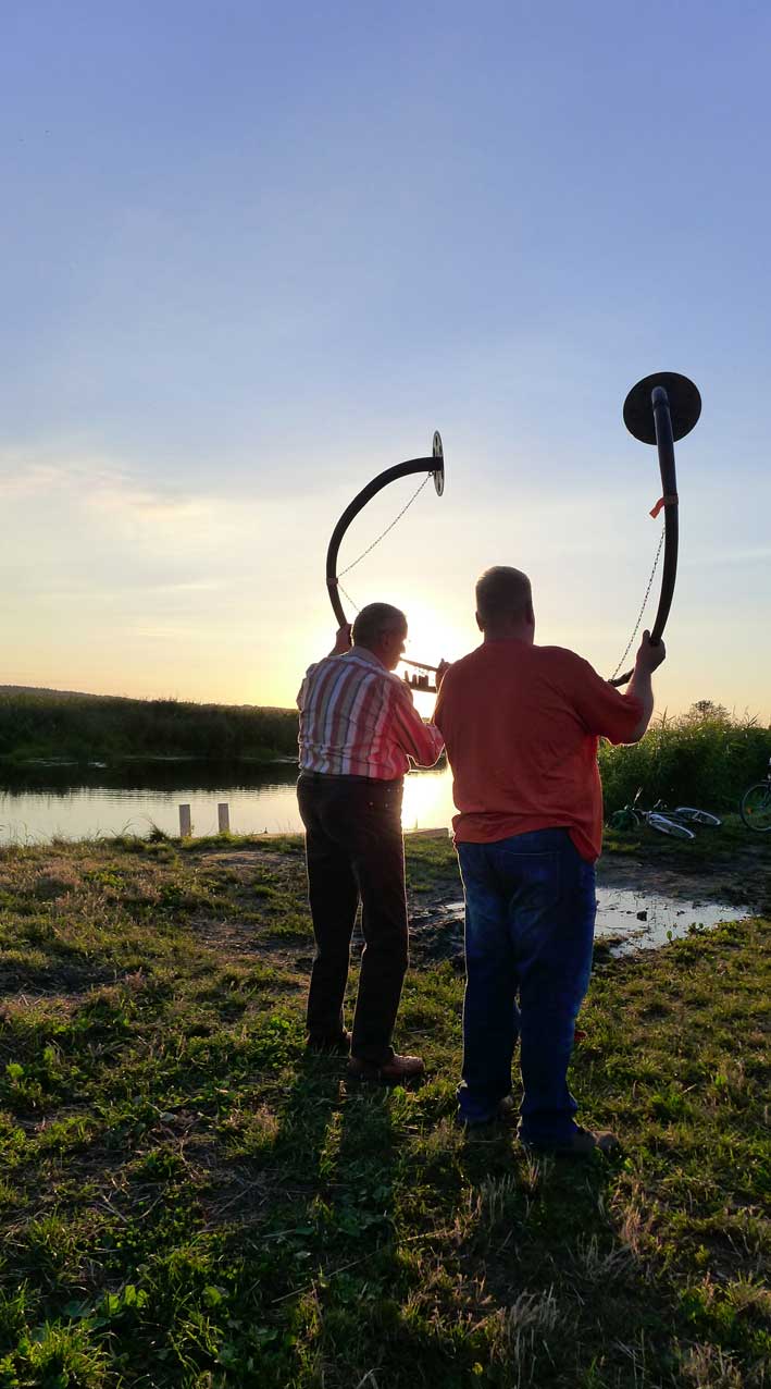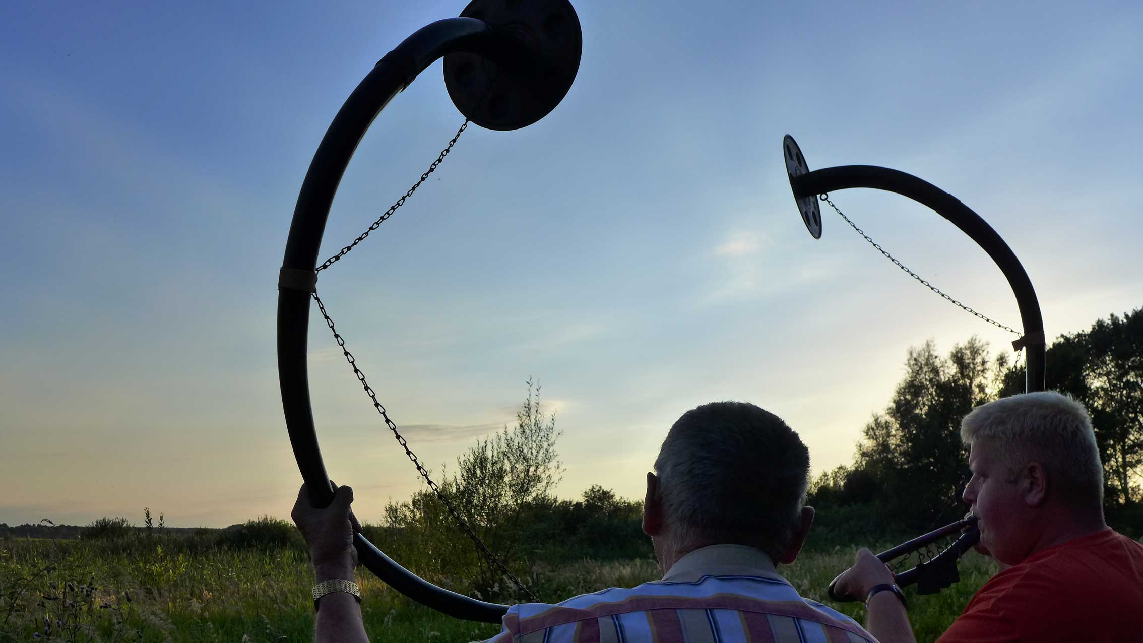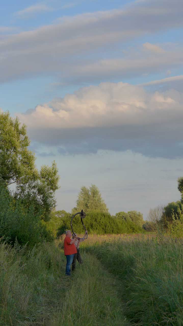 Luren-Übungen in den Trebelauen mit dem Blick bis zum Turm in Demmin