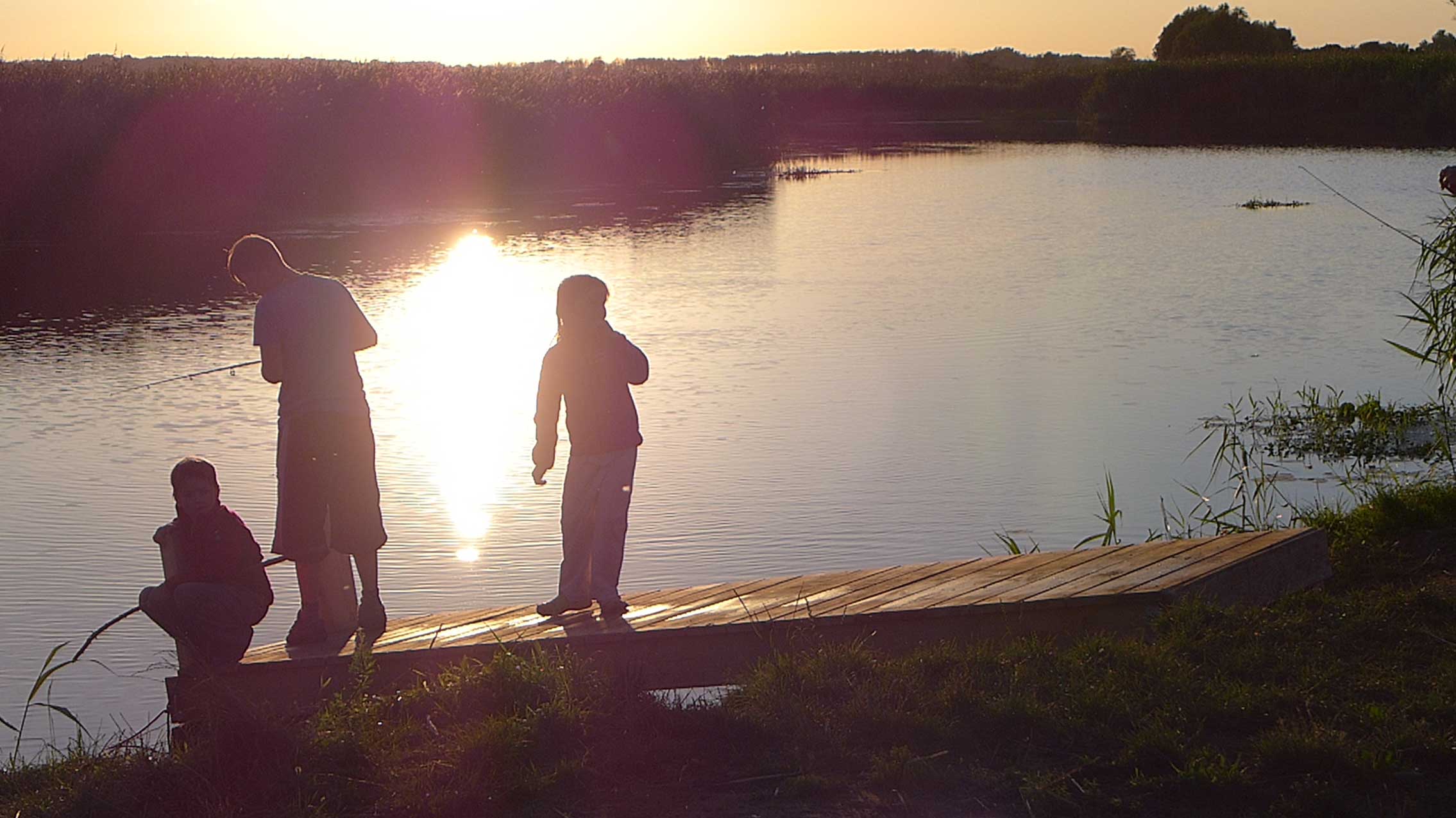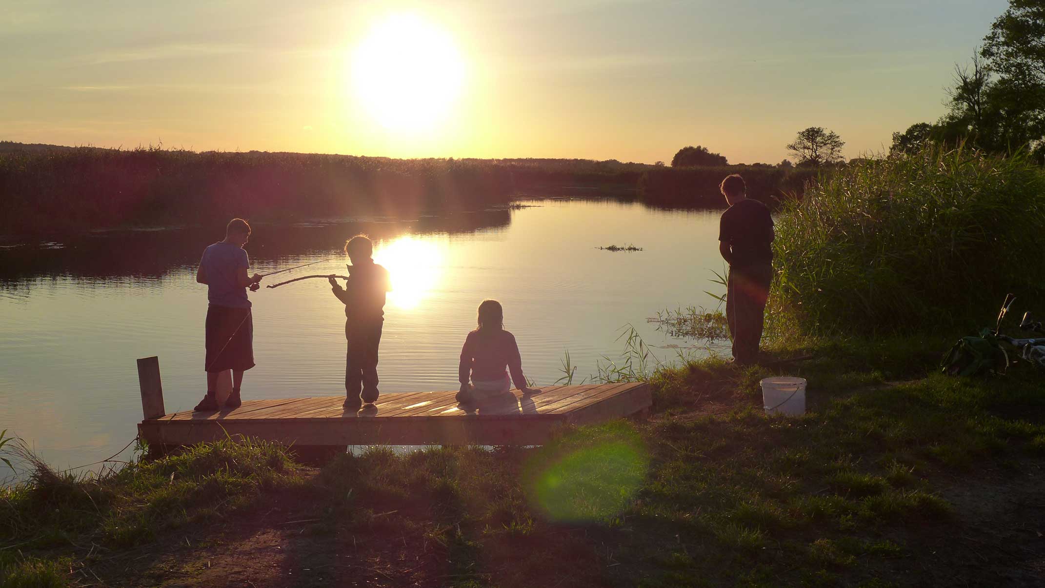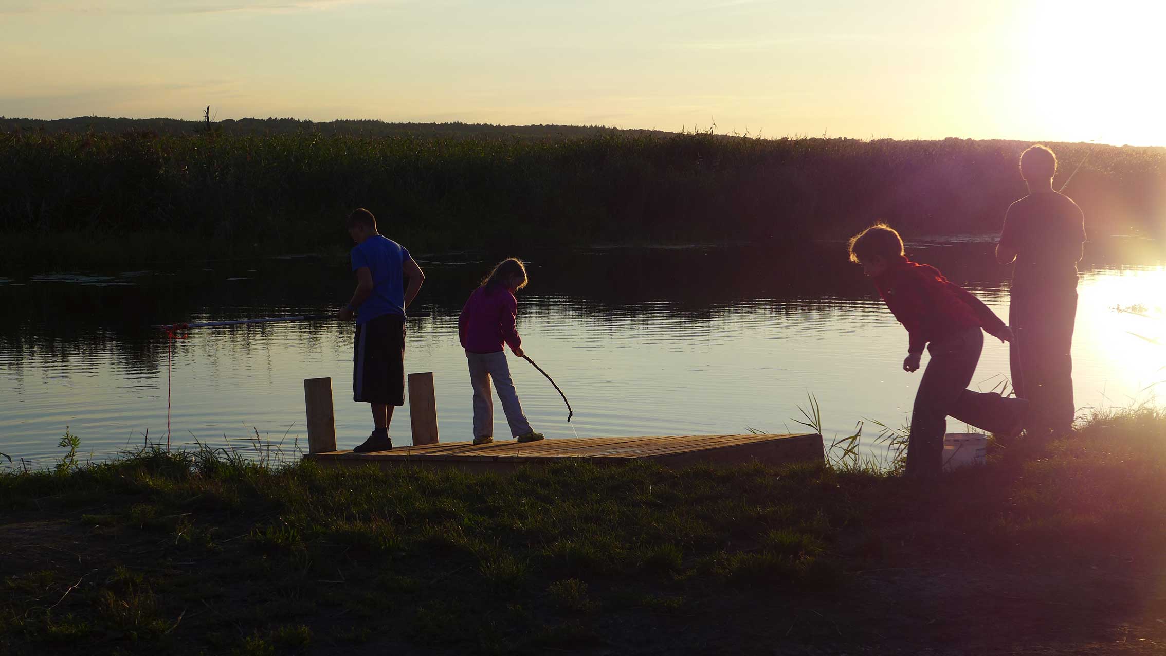 nun ist auch der Platz an der Trebel von den sich vereinigenden Kindern aus den Booten und des Dorfes angenommen