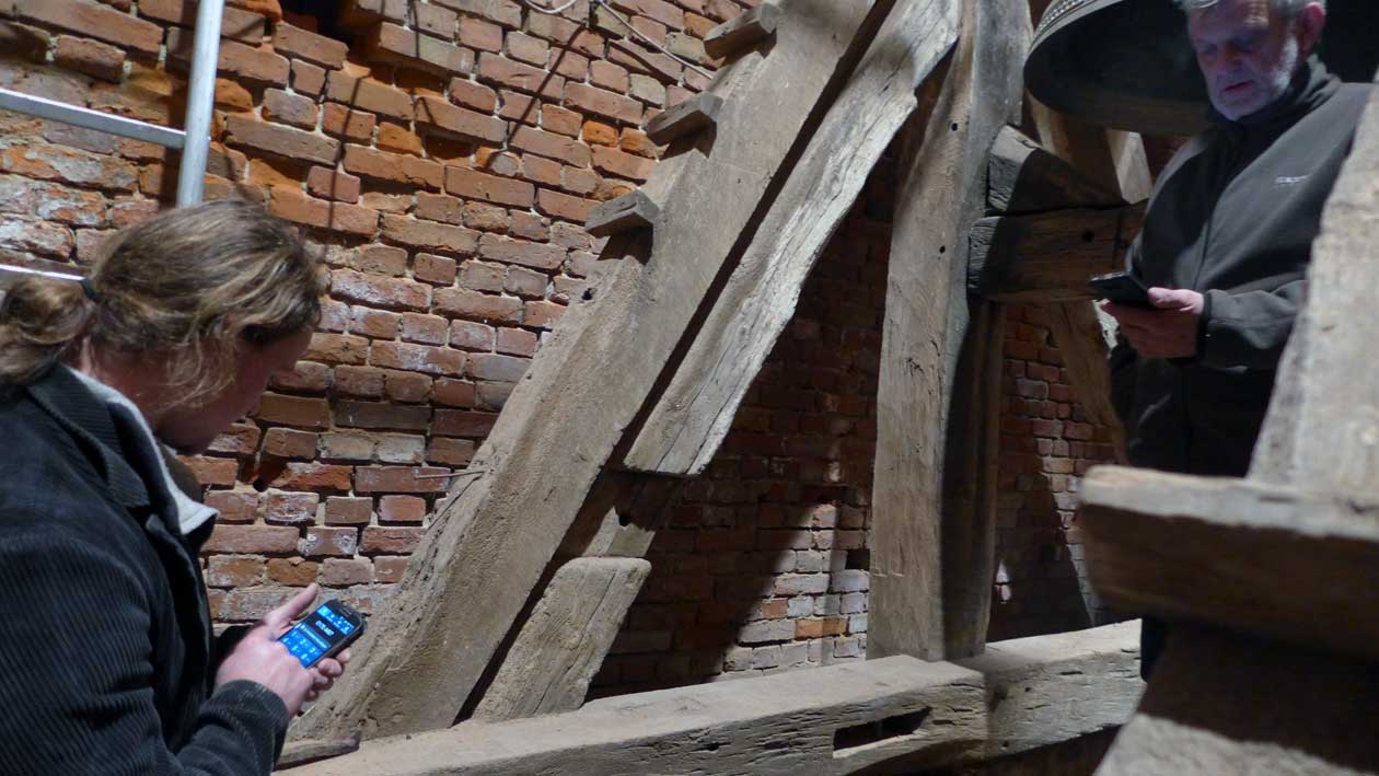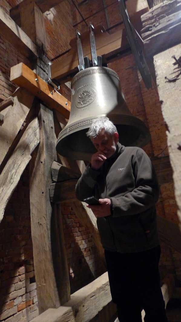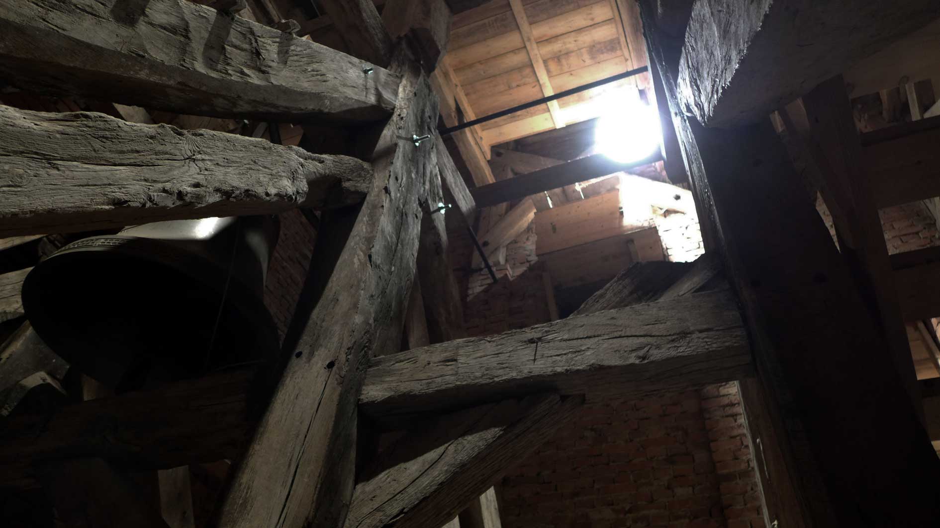 Im Inneren tut sich was. Am Montag soll der Glockenstuhl befestigt. Die alten Teile mit den nötigen neuen versöhnt werden. Das die neue Glocke schwingen kann. Und das auch während des Tages.