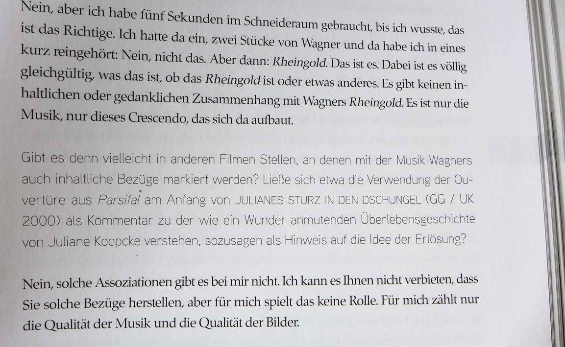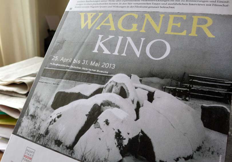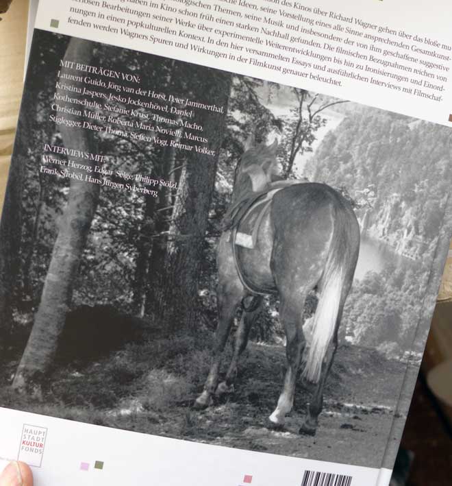 Das Wagner Buch aus Berlin gekommen und unser Gegenentwurf des Umschlags aus dem Pasifal ziegt den Weg, den Wagners Einfluss auf den Film genommen Von der Kitschwelt des Heimatfilms nach 1945 zu dem, was wir heute können. Das Existenzielle dieser Musik kann nun erfasst und zur Form werden und den Film im Theater, die Ursprungsträume der dämonischen Leinwand im Stummfilm durch das Ernst-Nehmen des Tons erfüllen.