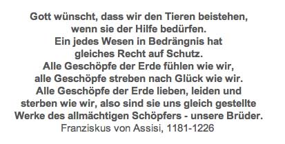 Der gegenwärtige Papst, der sich Franziskus nennt, nach dem grossen Freund der Tiere, wie der Menschen, weiss warum. Der Mensch aufgerufen ist, für sie zu sorgen und zu beten, wie er von ihnen lernt. In kindlichen Welten vor dem himmlischen Blick gleich zu sein als Kreatur Gottes.