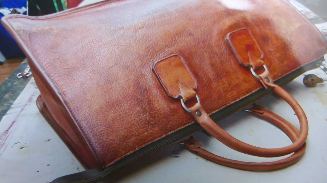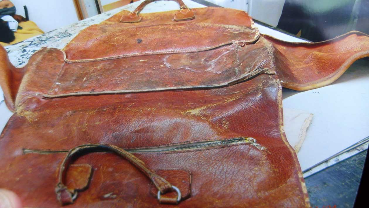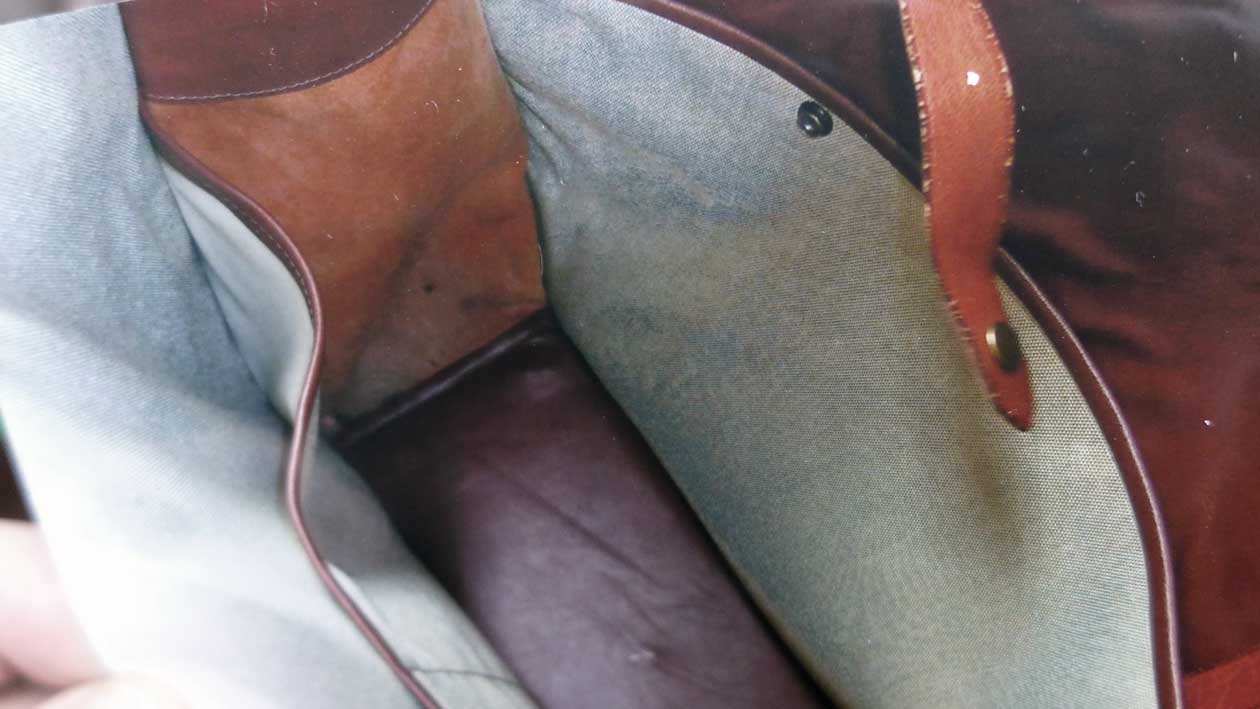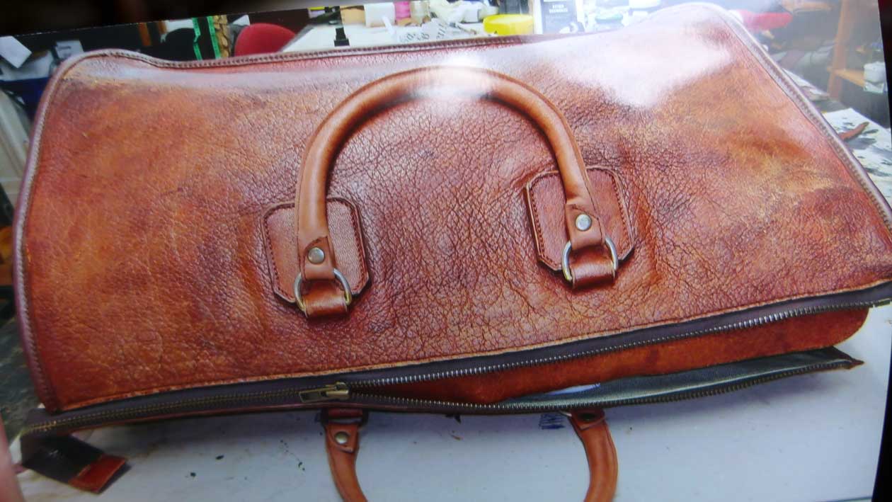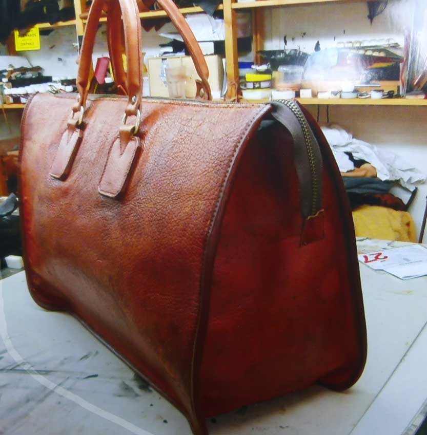 diese Tasche von 1967 in Paris zur Produktion des ersten Films Wieviel Erde braucht der Mensch/Scarabea gen. gekauft wurde nun erneuert