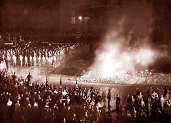 Ein Großteil der beschlagnahmten Gemälde wurde zunächst im Schloss Niederschönhausen in Berlin gesammelt und in der Folgezeit durch die „Kommission zur Verwertung der Produkte entarteter Kunst“ (Verwertungskommission) verwaltet. Ausgesuchte Kunsthändler bekamen den Auftrag, die „Verfallskunst“ zu verkaufen oder gegen von den Nationalsozialisten erwünschte Kunst zu tauschen. Eine Schlüsselrolle spielten dabei Schweizer Kunsthandlungen und Auktionshäuser. Besondere Aufmerksamkeit erreichte eine Auktion des Luzerner Kunsthändlers Theodor Fischer am 30. Juni 1939, bei der 126 hochpreisige Bilder aus dem konfiszierten Bestand zum Gebot standen.[26] Einigen Kunstwerken war ein anderes Schicksal zugedacht. Am 20. März 1939 sollen von den beschlagnahmten Werken 1004 Ölgemälde und 3825 Graphiken in Berlin im Hof der Feuerwache verbrannt worden sein