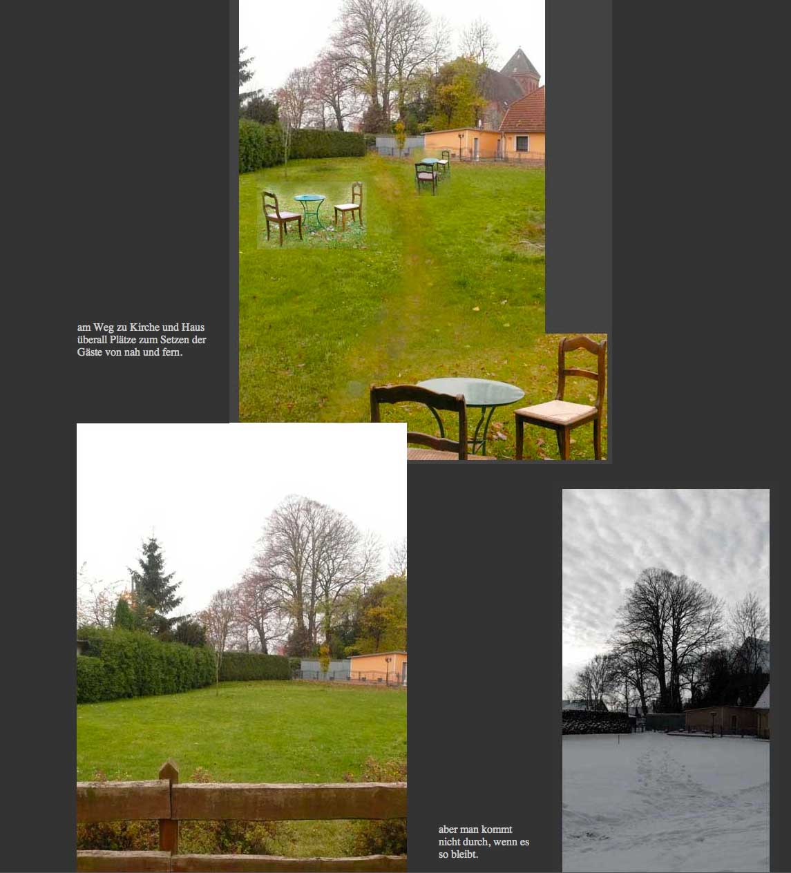 und dann der Plan den Weg zur Kirche, die Achse des Dorfs noch einmal zu beleben durch Musik.