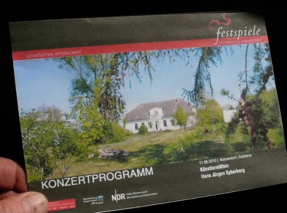 wird man wohl verstehen, dass diese Nossendorf-Sommer mit den Festspielen und in ihrem Auftrag besondere Installtionen waren und sind und erkennen welcher Art, von Tönen und Bildern und die Menschen immer als Korpus daziwschen besonderer Art. Als artefakt des Seins auf eine Zeit und einen Orrt zusammen. Und so für alle -weltweit.