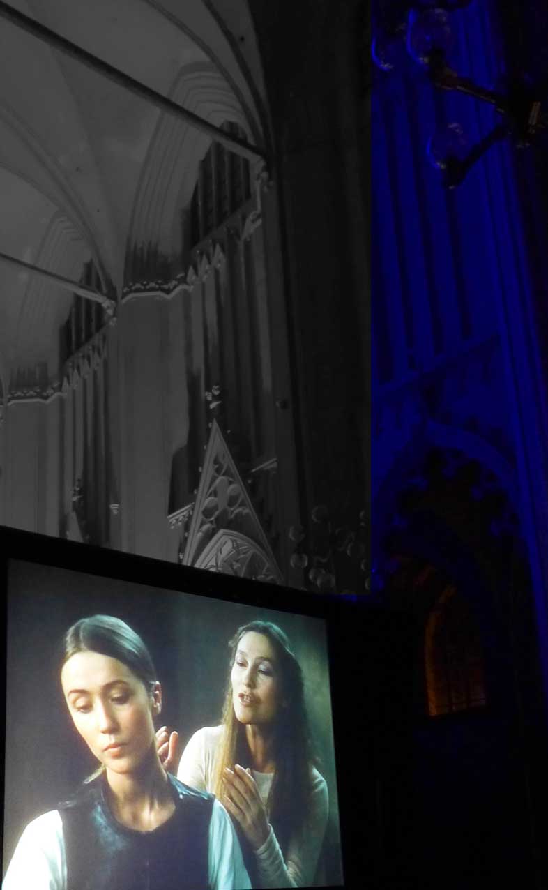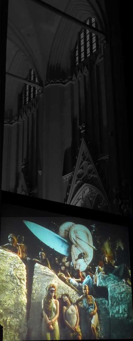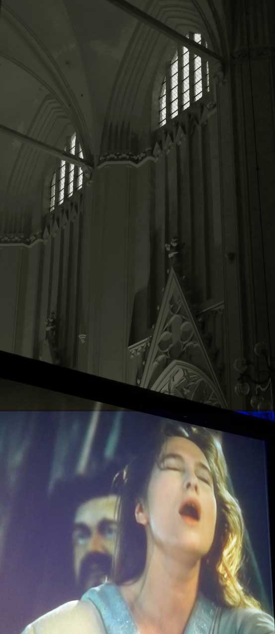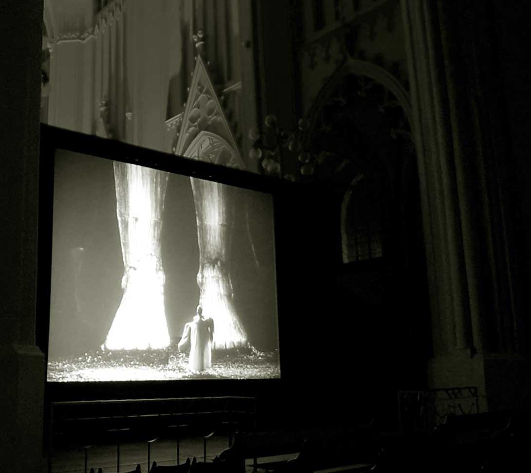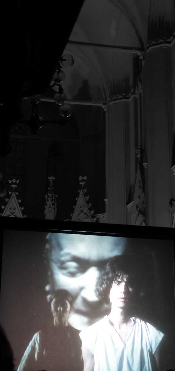 Wir haben diesen Parsifal als Film in Cannes gezeigt um Mitternacht bis Sonnenaufgang, in den Rocky Montains in Telleroid, an der Antlantikküste im Opernhaus von Lissabon, in Rom vor 10 000 Besuchern im Gewitter der Marcentiuns Ruinen, im Bayreuth des Wolfgang Wagner der Hausverbote, und nun in Greifswald ganz nahe zum ersten Mal vor allen im und im gotischen Haus. Danken wir dem, der es möglich gemacht.