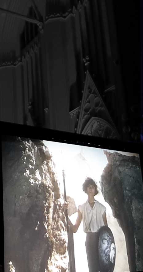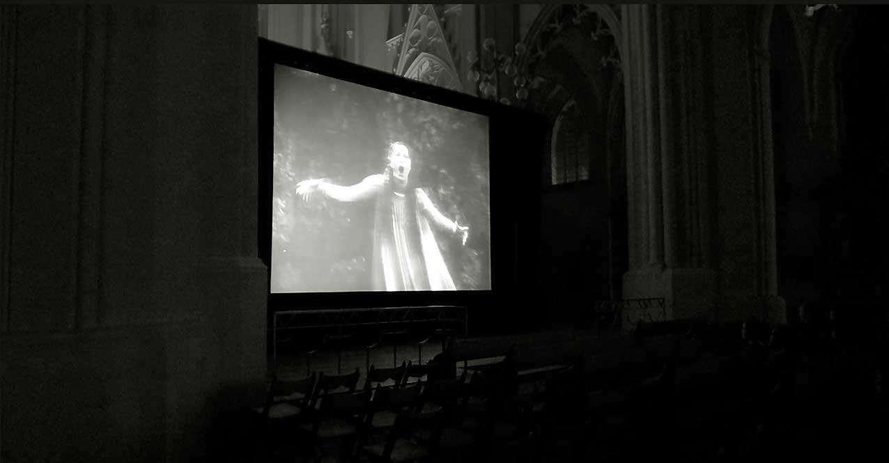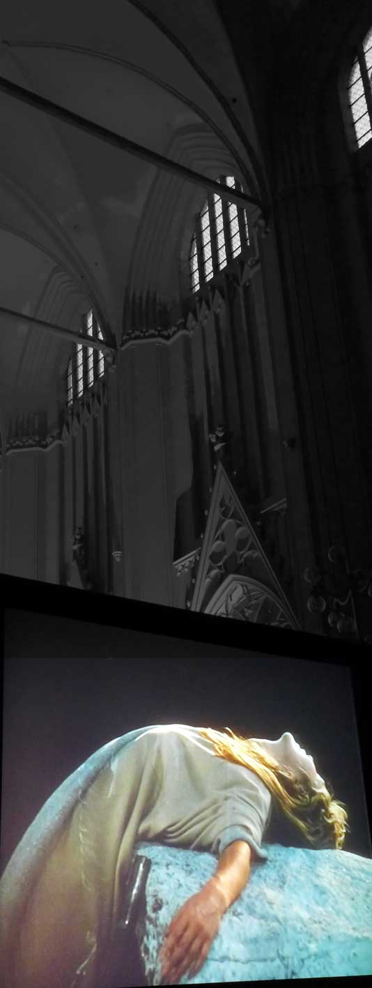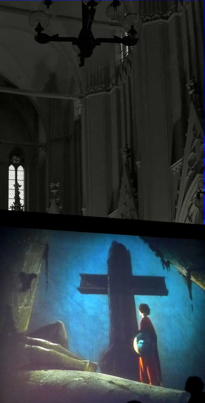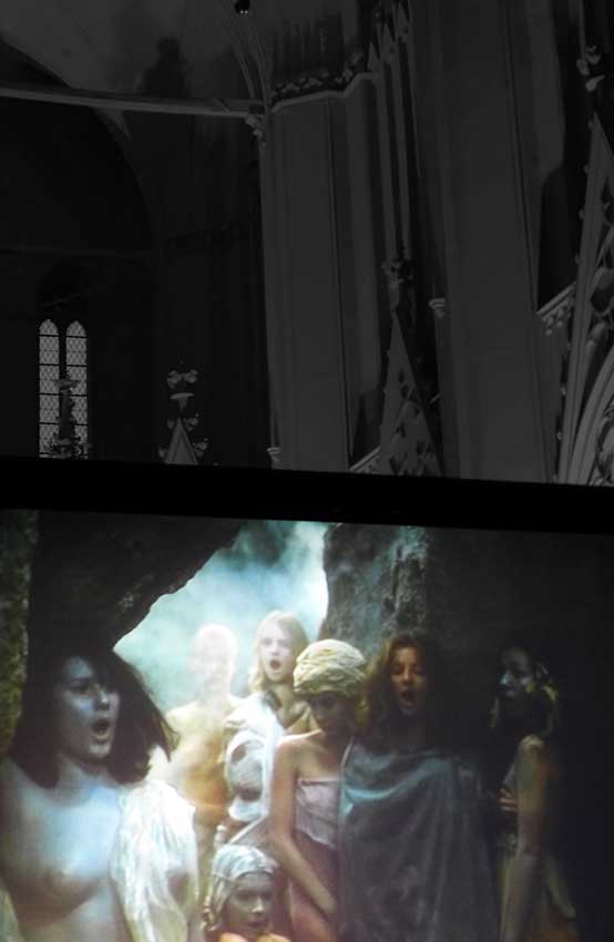 Wir haben diesen Parsifal als Film in Cannes gezeigt um Mitternacht bis Sonnenaufgang, in den Rocky Montains in Telleroid, an der Antlantikküste im Opernhaus von Lissabon, in Rom vor 10 000 Besuchern im Gewitter der Marcentiuns Ruinen, im Bayreuth des Wolfgang Wagner der Hausverbote, und nun in Greifswald ganz nahe zum ersten Mal vor allen im und im gotischen Haus. Danken wir dem, der es möglich gemacht.