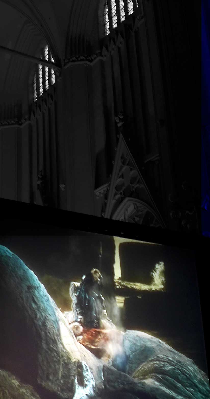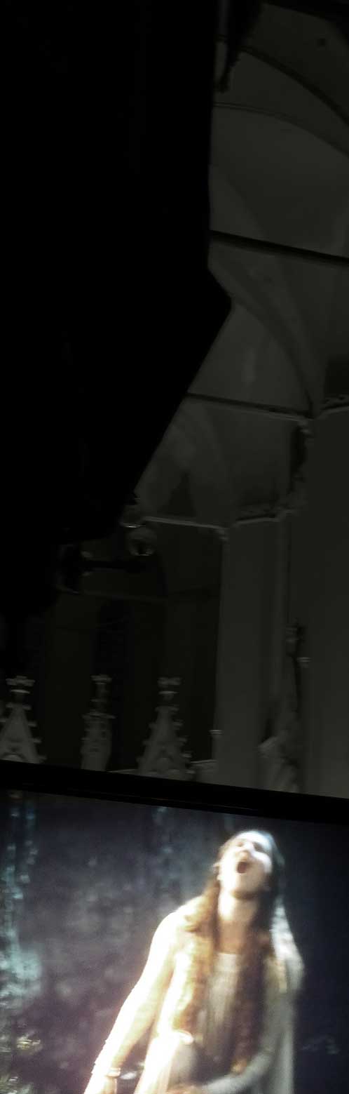 Parsifal, dem für Bayreuth geschriebenen und ihm gewidmeten, zurück zu bringen, im Fluss der Bilder im alten Gehäuse, dem wir entstammen, unter hohen Bögen sich vefrdunkelnden Räumen, nun im Netz der Signale hier zu sich gekommen, Durch die Zeiten geprüft und gehärtet und tönender Gedanken voll. Ein paar Ausschnitte mittendrin. Ein Versuch, obs gelingt.