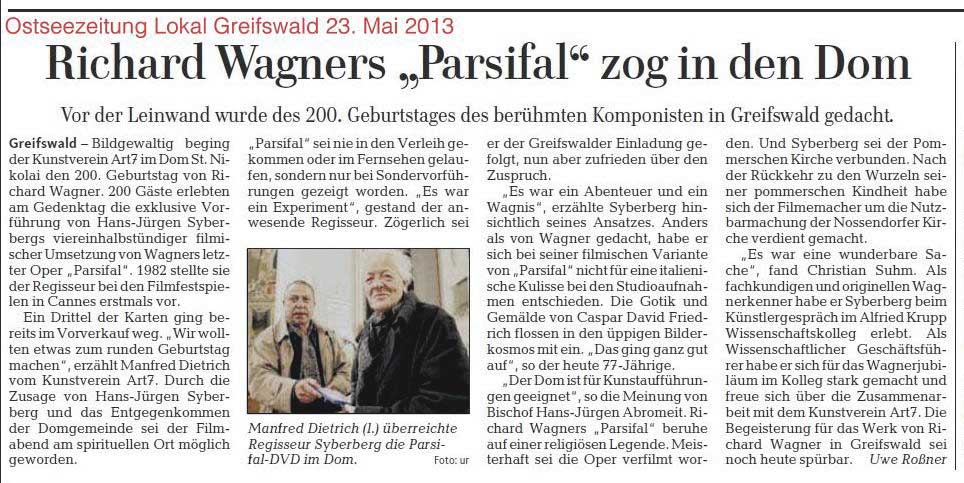 Weiter Parsifal in Greifswald Dom am 22. Mai zum 200. Geburts-Tag