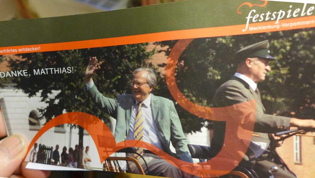 Im Schweriner Theater(mit 25 Mill. Budget aktuelle Premiere heute>>>)vom Intendant nicht empfangen, ein Beispiel derer mit denen wir es in den all-täglichen Theatern zu tun haben, ohne Essen Trank nach 3 Stunden Feier, konnte es die Feier nicht stören, die Probleme selbst aus eigener Tasche und karg zu lösen. Mit des Ministerpräsidenten persönlichem Auftritt.